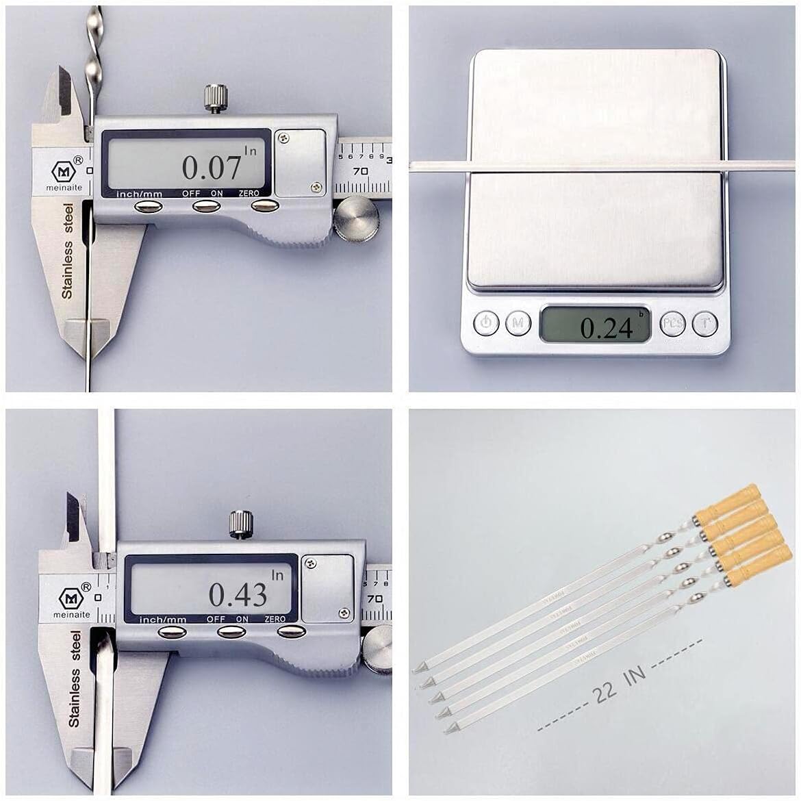 - LARGE KEBAB MEAT SKEWERS:The whole product length of our large BBQ kabob skewers is 22 inch. Product Details:The wooden handle portion is about 4 inch;the twist portion is about 3 inch;the food placing portion is about 15 inch.The barbecue skewers width is 0.4 inch ;The barbecue skewers thickness is 0.07 inch