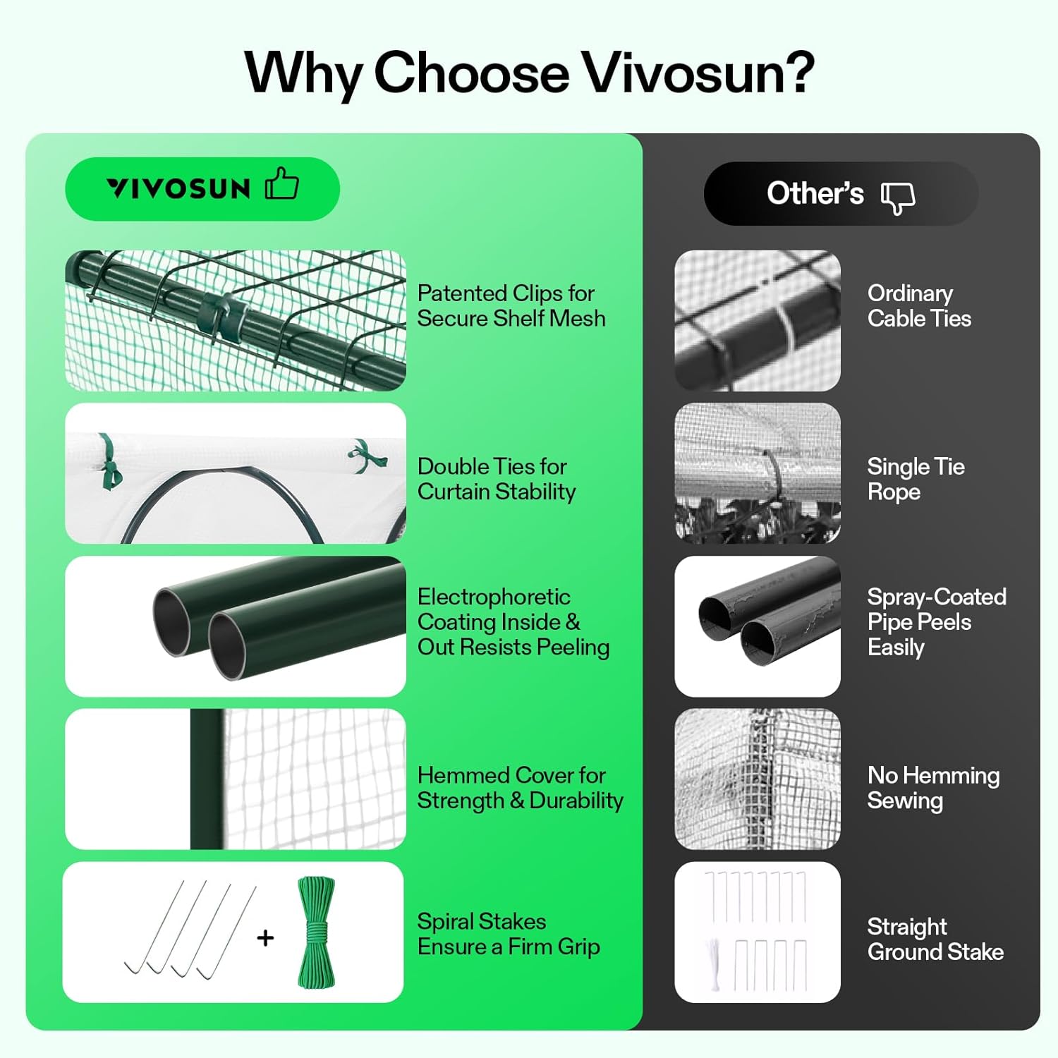 - Zippered Roll-Up Doors: Comes with the zippered roll-up doors for easy access. Beneficial to regulate external airflow and bring the optimum air circulation. Keep warm and ventilated for plants