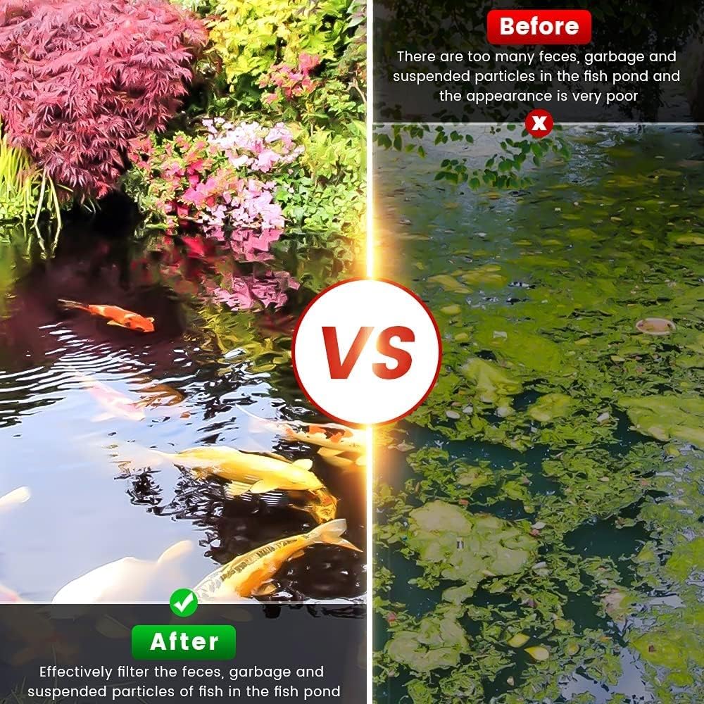 - High Efficiency Filtration:Powerful pond filter pump with multiple filter system, built-in two large filter sponge can efficiently filter debris and suspended particles in water, create a clean and beautiful pond.