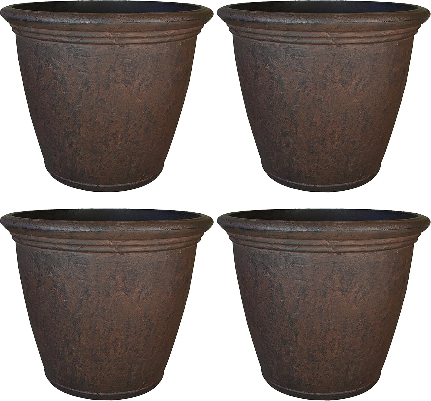 Sunnydaze 15.25-Inch Anjelica Large Plastic Pot for Plants - Outdoor Polyresin Round Planter with Drillable Drainage Holes - Rust - 4pk