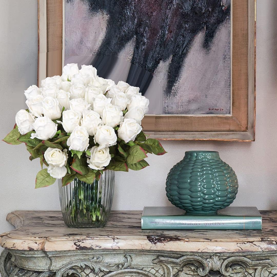 - ๐น NATURAL COLORS & MORE REALISTIC - These faux roses flowers are more vivid and beautiful than other fake foam flowers or fabric flowers. We use a 3D print process to create the colors and the texture of the petals that makes these realistic flowers roses feel moist and real to the touch, and the rose texture are clear and lifelike.Each single rose petal has a realistic texture, fake roses petals with curls edges are just perfect