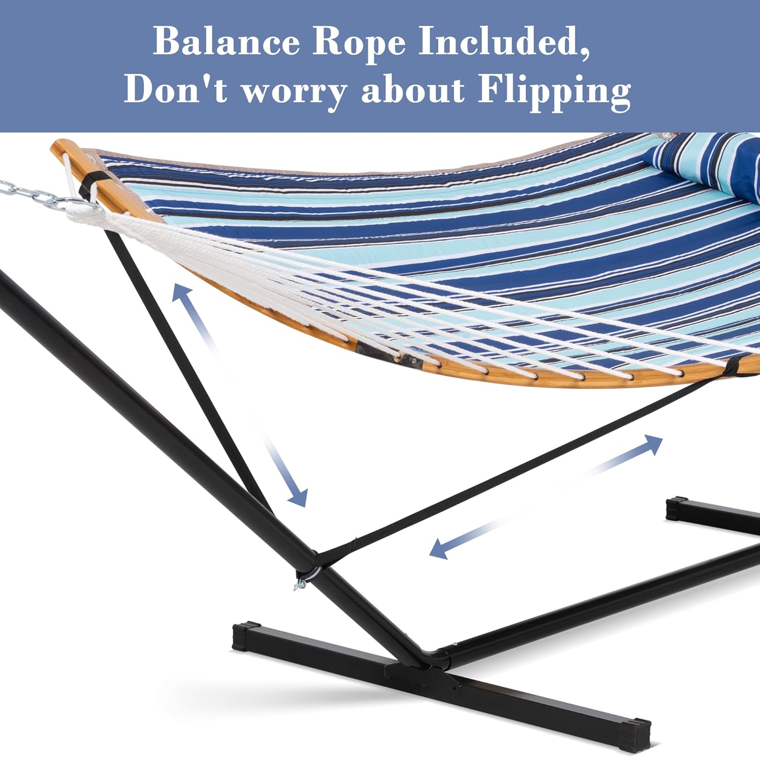 SUNCREAT Double Hammock with Stand Included, Portable Hammock with Stand and Large Pillow, Blue Stripes
