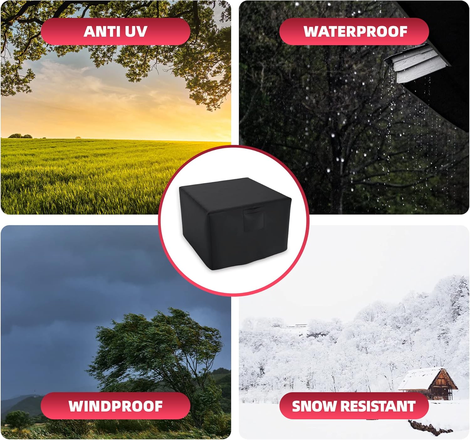 - 【Universal Size】 Square fire pit cover size up to 32 x 32 x 24 Inch, perfectly fits 28'', 30'', 31'', 32'' Square fire pit table. Please measure carefully before purchasing.