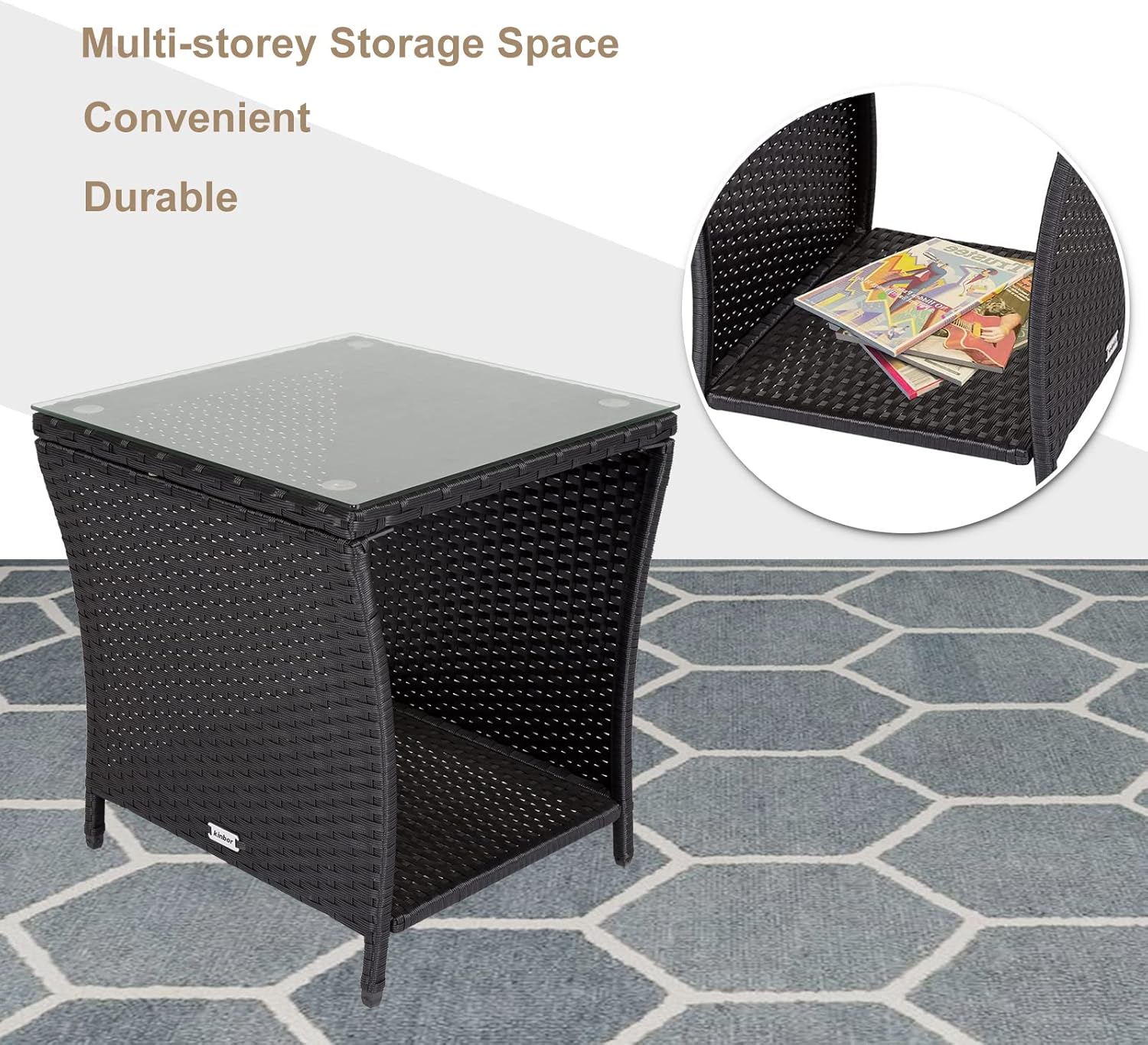 Outdoor Small Patio Table - PE Rattan Coffee Table, Wicker Side Table for Patio, Balcony & Porch, Durable & Iron Frame (1, Dark Black)