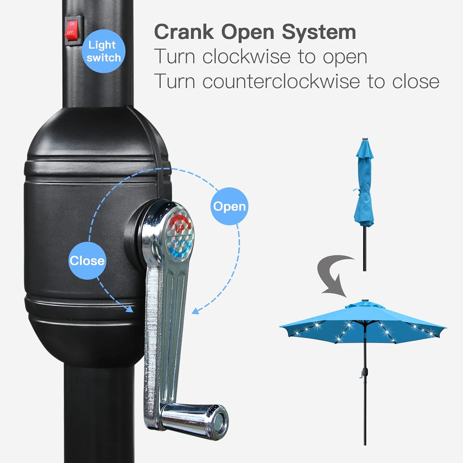 Sunnyglade 9' Solar LED Lighted Umbrella with 8 Ribs Adjustment and Crank Lift System for Patio(Blue)
