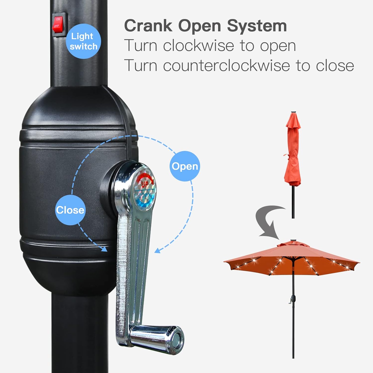 Sunnyglade 9' Solar LED Lighted Patio Umbrella with 8 Ribs/Tilt Adjustment and Crank Lift System (Orange)