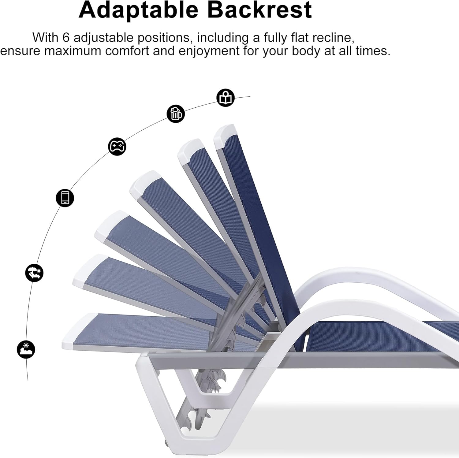 PURPLE LEAF Patio Chaise Lounge Chair Outdoor Plastic Textilene Sun Bathing Recliner Tanning Pool Lounger with 6 Adjustable Position for Outside Beach in-Pool Lawn Poolside, Blue