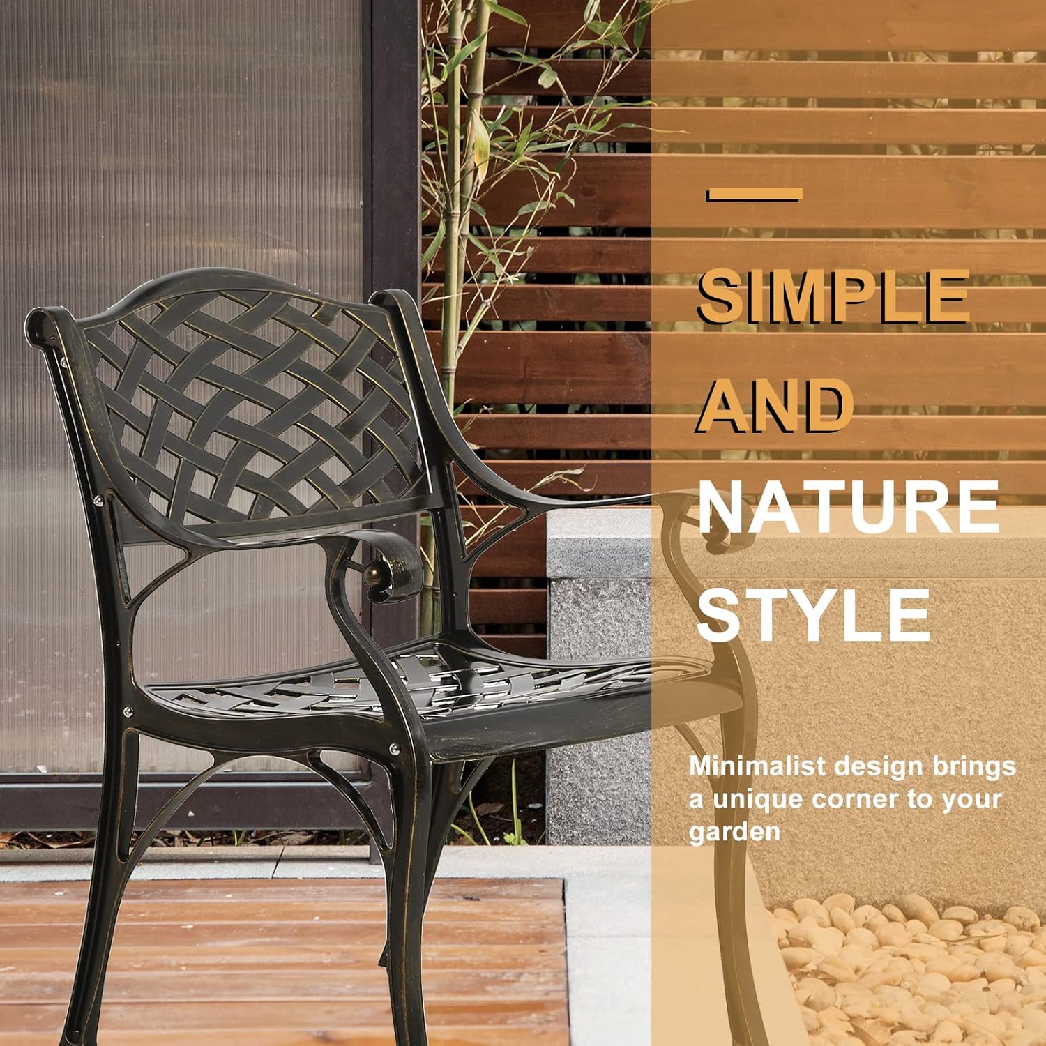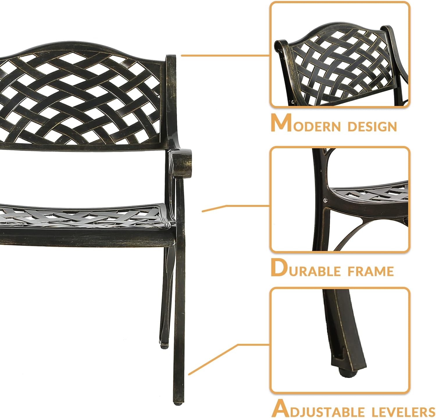 3-Piece Outdoor Patio Dining Set, All-Weather Cast Aluminum Patio Furniture Set for Backyard Garden Deck with 2 Chairs and 35.4” Round Table, 2" Umbrella Hole