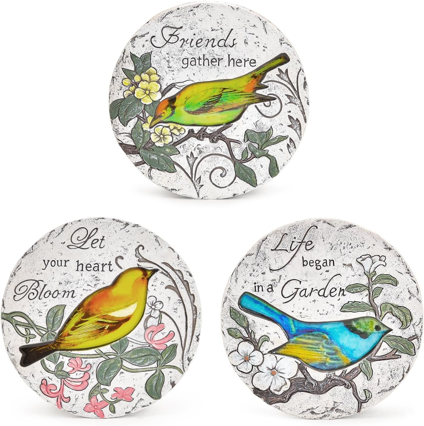 Sungmor 3PC Pretty Garden Stepping Stones, 9.5" Large Concrete Decorative Stones with Beautiful Pattern, Unique Outdoor Lawn Accents, Yard Walkway Flower Bed Wall Shelf Welcome Friends Decorations