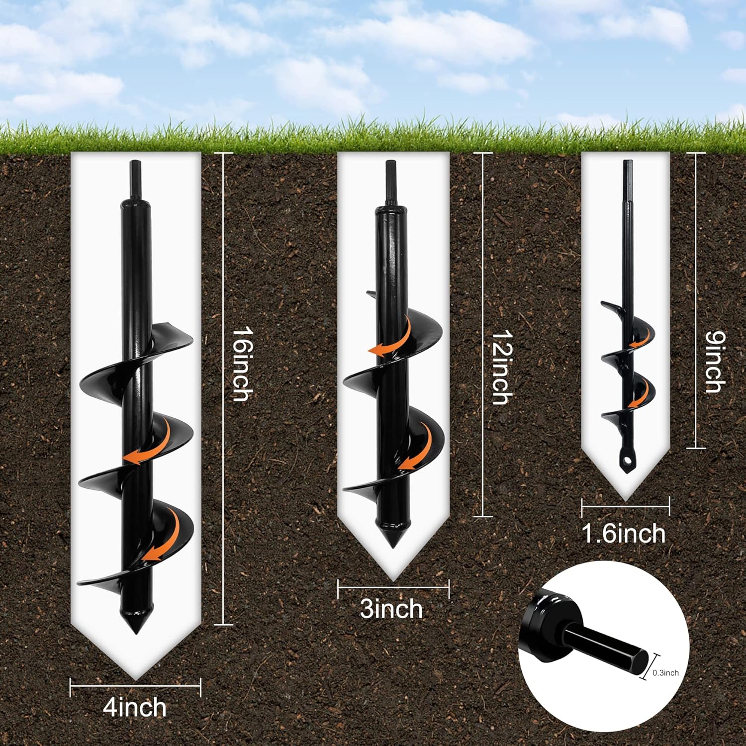 - 【100% SATISFACTION】 We promise you 100% satisfied customer service, if you have any question about our garden auger drill bit set , please feel free to contact us timely! Our 7*24 customer service is always waiting for you!