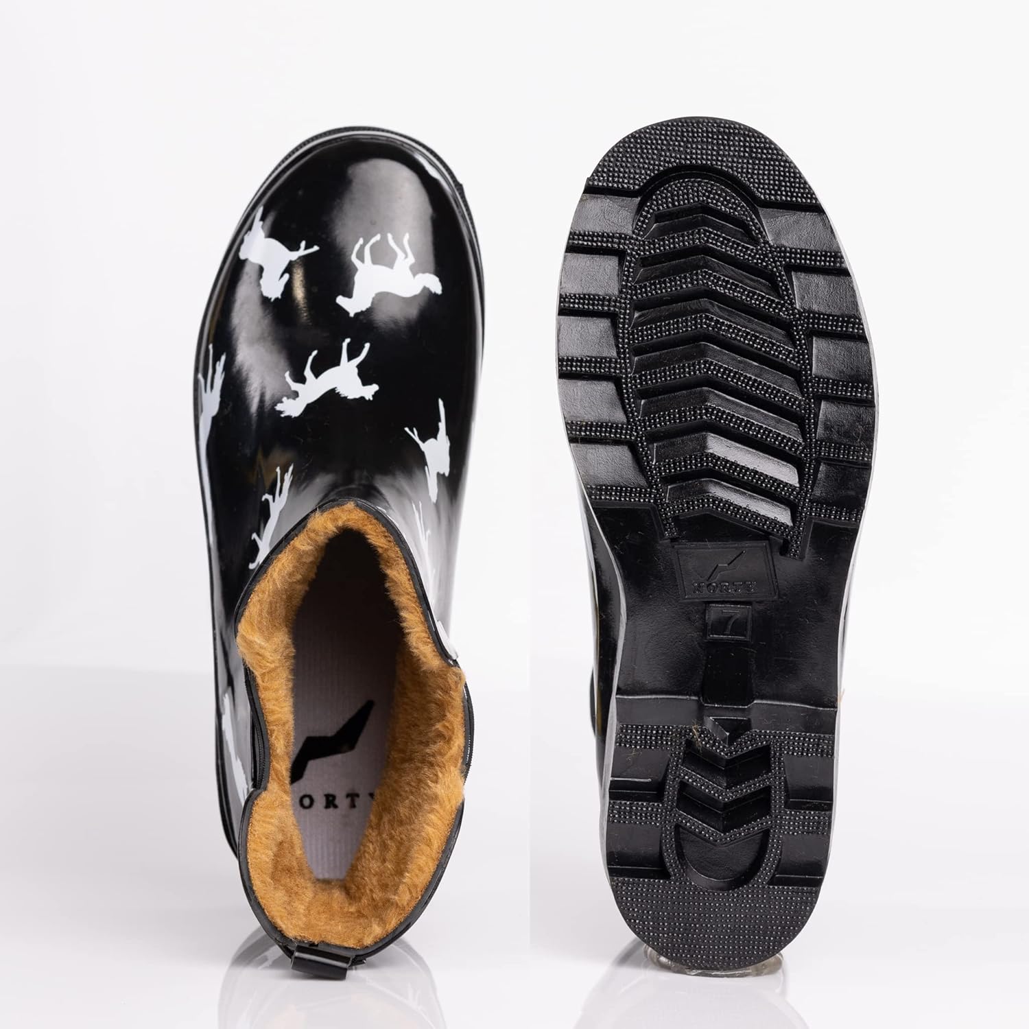 • RUNS A HALF-SIZE LARGER: With extra room for thick socks, these ankle rain boots keep feet warm on colder than cold days. Size Info: US Size: 6, 7, 8, 9, 10, 11 - EUR Size: 37, 38, 39, 40, 41, 42 - Foot Length: 9.25", 9.50", 9.75", 10.00", 10.50", 10.75" Shaft circumference is 12" with boot height of 6" for all sizes