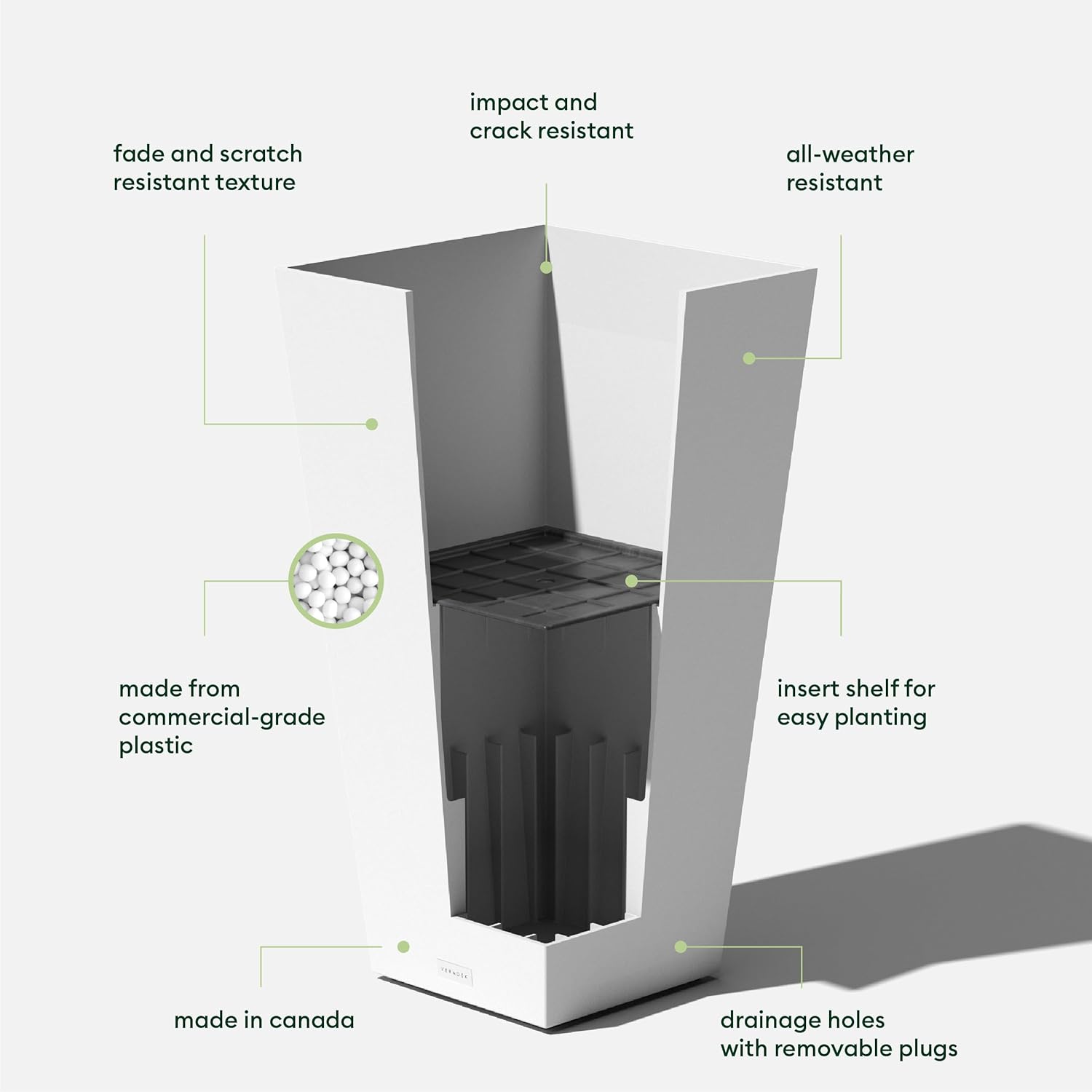 - PLASTIC COMPOSITE MATERIAL: This single wall molded planter has a smooth, scratch-resistant finish that is made from a high-grade Polypropylene composite, giving the tall square tapered pot its flexible and impact resistant qualities to withstand all seasons
