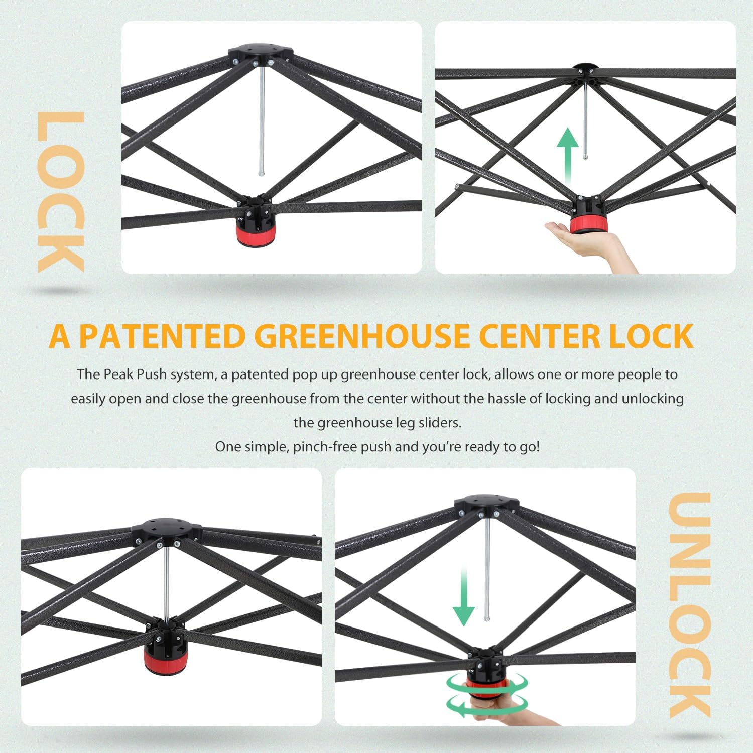 - EASY SETUP: This pop up greenhouse with patented center lock technology supports one person setup in seconds. The pre-assembled frame and innovative Peak Push locking system delivers a quick setup. No tools required. Whether you're a seasoned gardener or just starting out, the EAGLE PEAK pop-up greenhouse for outdoors saves you time and hassle