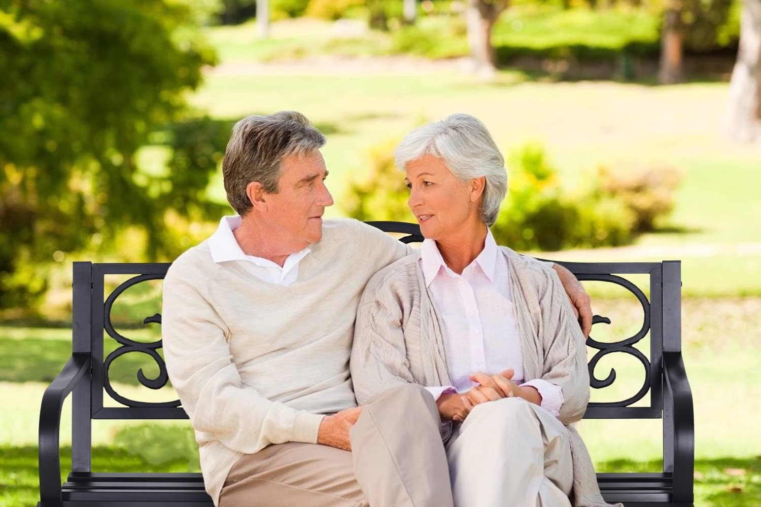 - 【Sturdy and Safe】This garden bench is made of cast iron backrest and metal frame, which is stable and sturdy for long-term use. The chair is all finished with round edges and smooth surface, providing you with safe relaxation
