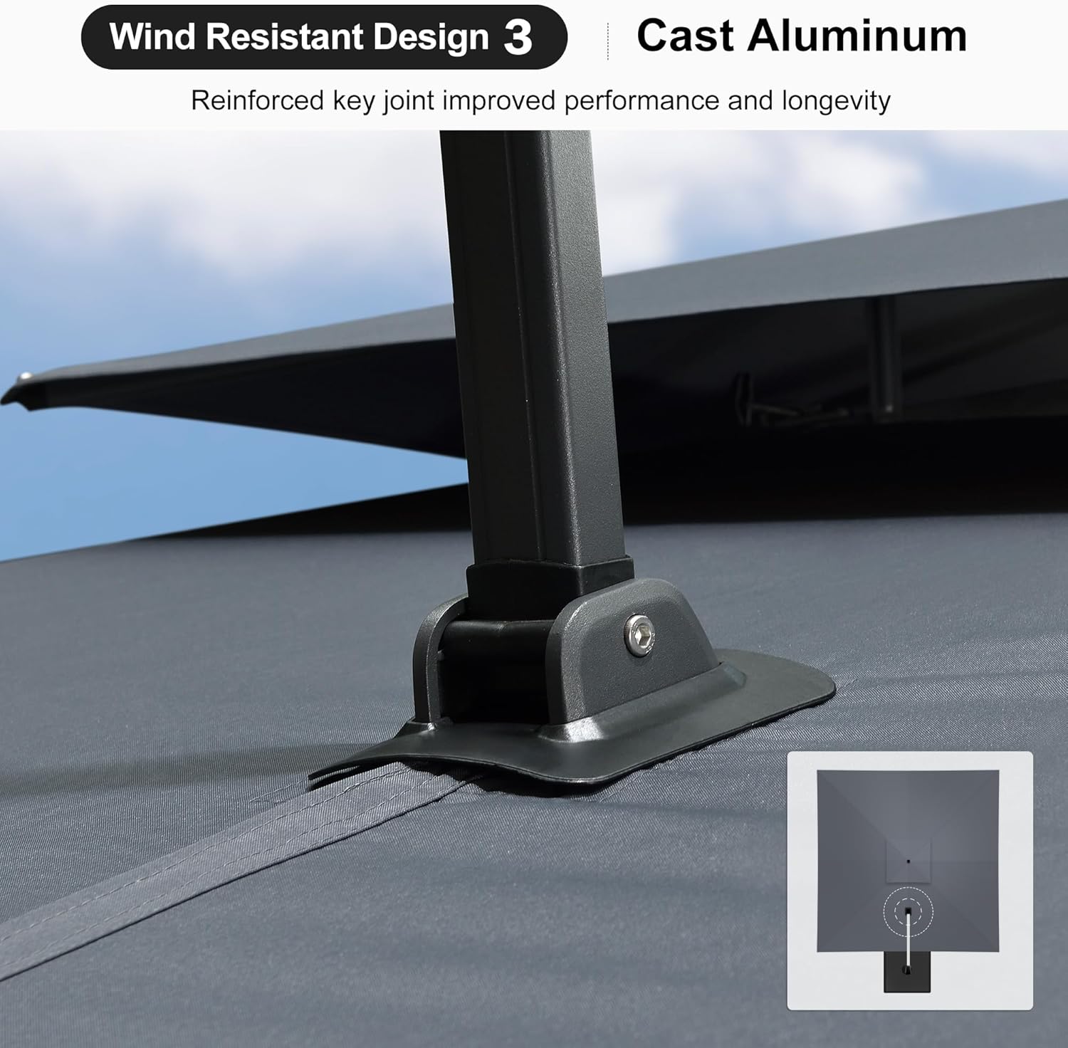 PURPLE LEAF 11FT Cantilever Outdoor Umbrellas Large Patio Umbrella Hanging Double Top Square Offset Umbrella with 360°Rotation Tilting Umbrella Outdoor Patio, Grey