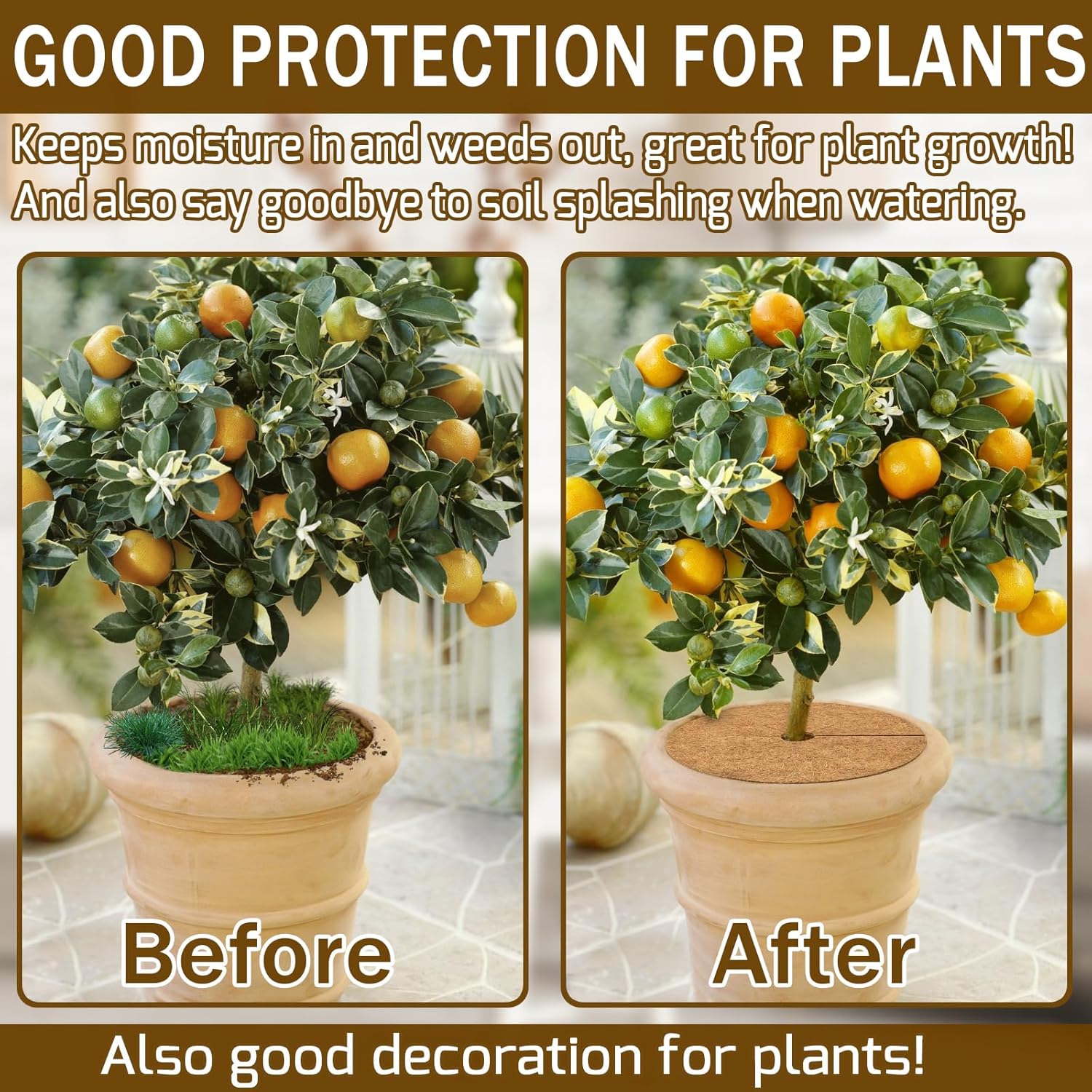 - Full of life: Our coco mulch disc rings are perfect choice for your plants, they can be used in garden, living room, restaurant, balcony, nurseries, offices, etc. Where there is a plant, there is a need. They will make your plants more lush and your home full of vitality