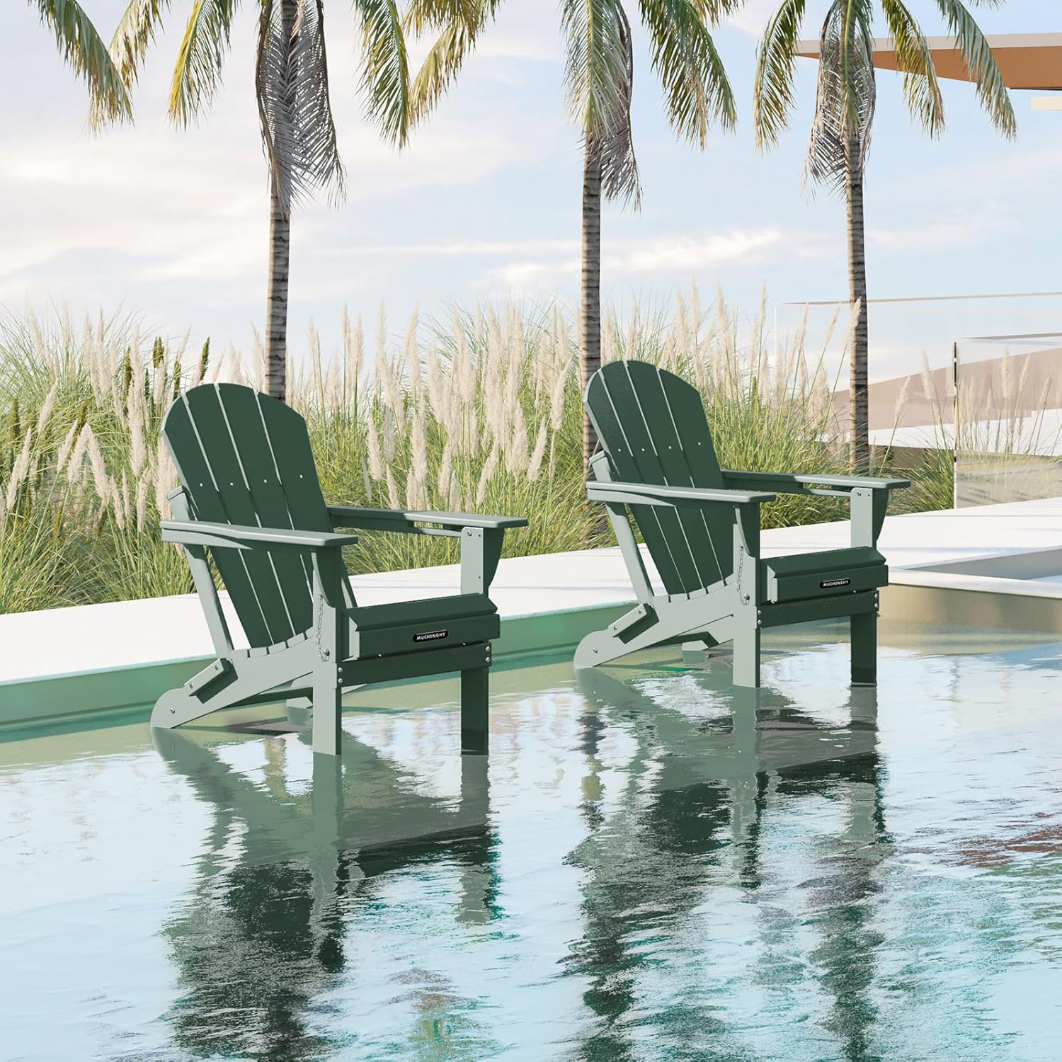 MUCHENGHY Folding Adirondack Chairs, Patio Chairs, Lawn Chairs, Outdoor Chairs, Adirondack Chair Plastic, Fire Pit Chairs, Weather Resistant with Cup Holder for Deck, Backyard, Garden(Green)