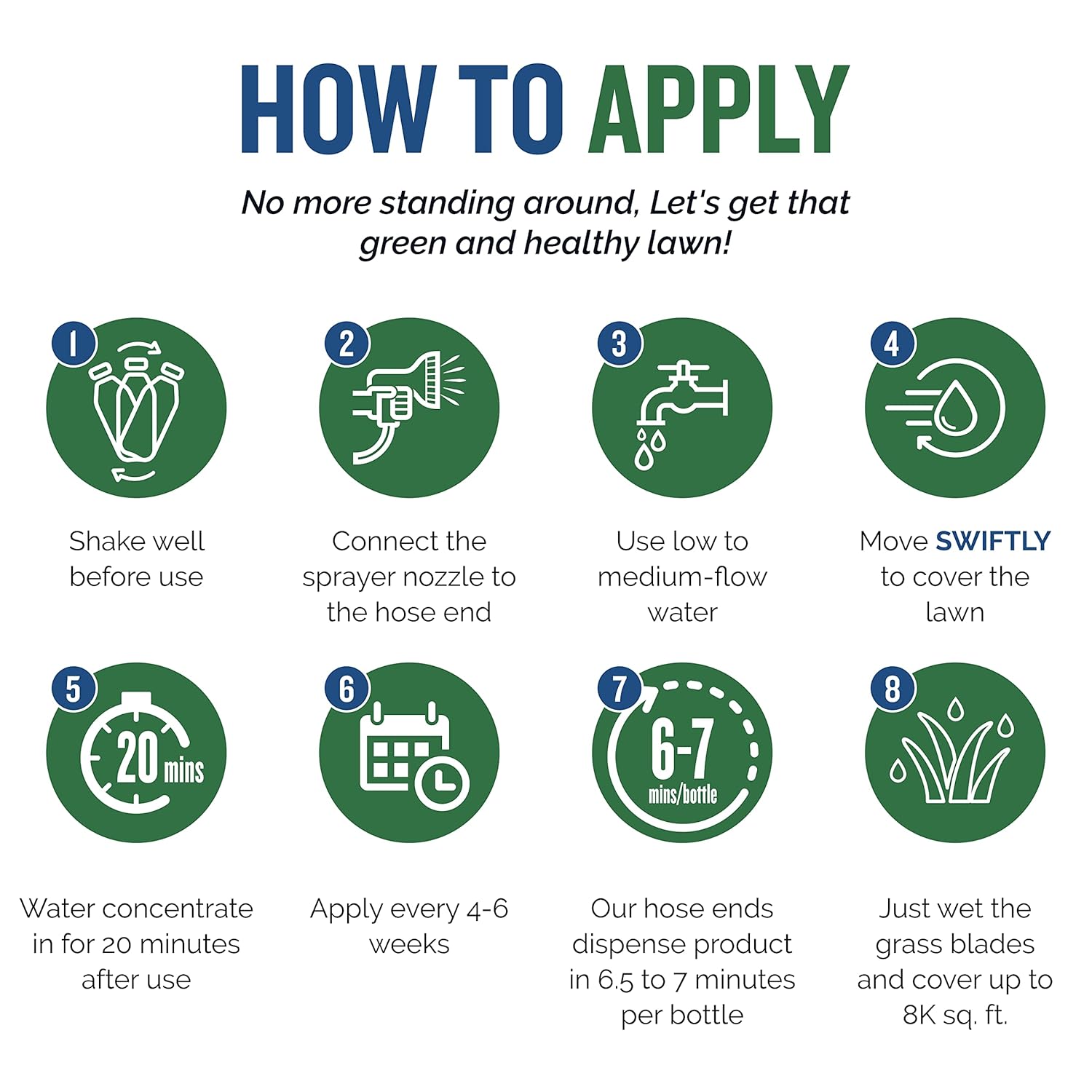 - Effortless Application: Our grass fertilizer for lawn simplifies lawn care routine with its user-friendly design and liquid formula. Mix 4 oz. of the Lawn Advancer per gallon of water, shake, apply, and witness the transformation of the grass. Apply every 4-6 weeks to provide energy, nutrients and stress relief to your lawn and soi