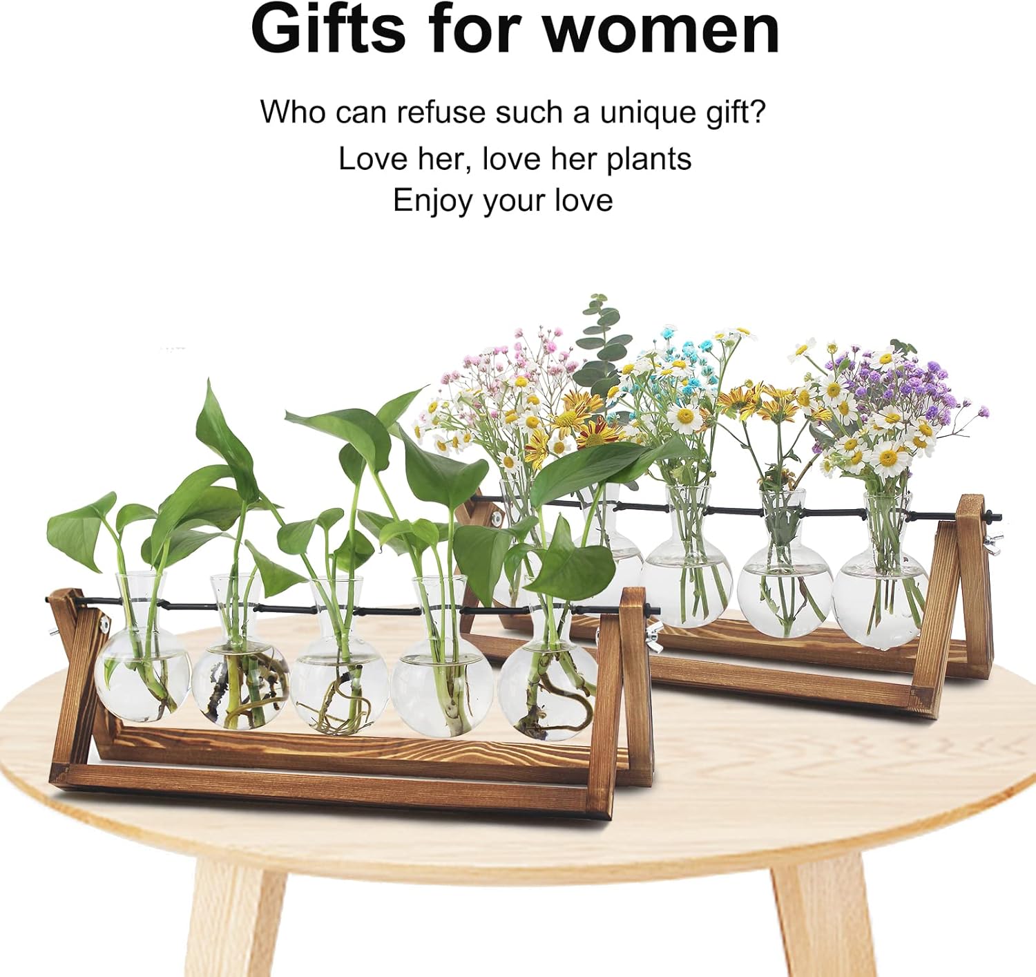 - Plant Propagation Station: Combination of wooden plant stands and thickened glass bulb vases perfect for office home room decoration. Those Who like plants and enjoy life will love it at a glance