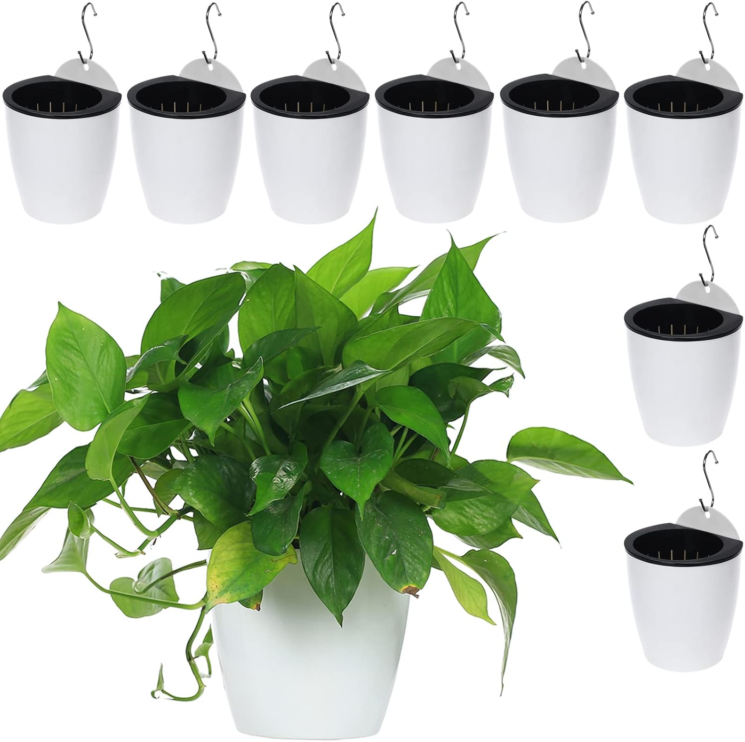 - Self-watering: The eight sets of 5 inches self-watering planters come to you with 8 black inner baskets, 8 white outer pots, 8 hooks for hanging, and 8 cotton ropes. They store water and feed your plant for days, and you don’t have to water your plant frequently. The wall hanging planters help you to take care of your plants when you leave your home or office for days.