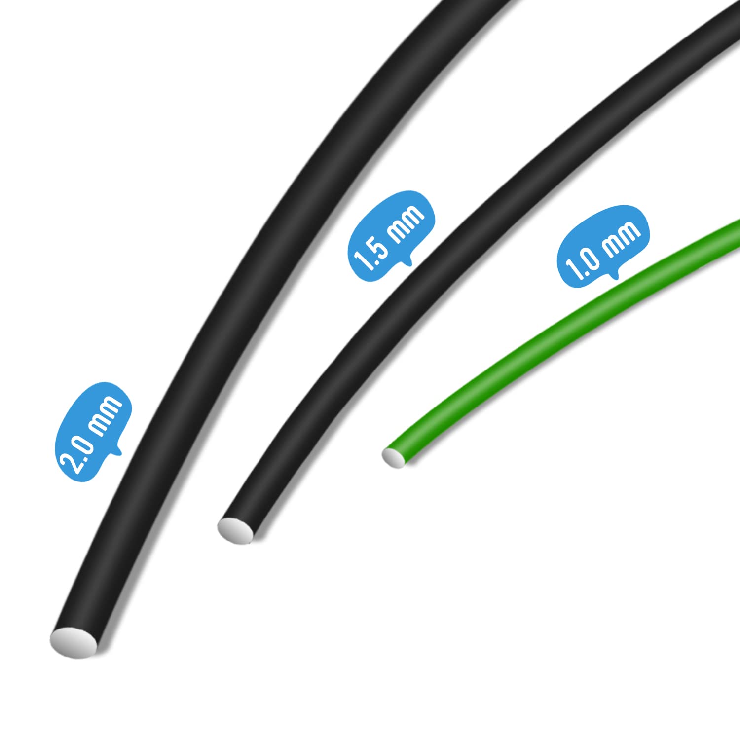 - PACKAGE INCLUDE: 1 x wire cutter, 1 roll x 1.0mm green wire, 1 roll x 1.0mm brown wire, 1 roll x 1.0mm black wire, 1 roll x 1.5mm black wire, 1 roll x 2.0mm black wire. 32.8 feet (10 m)per roll. 164 Feet (50 m) Total.