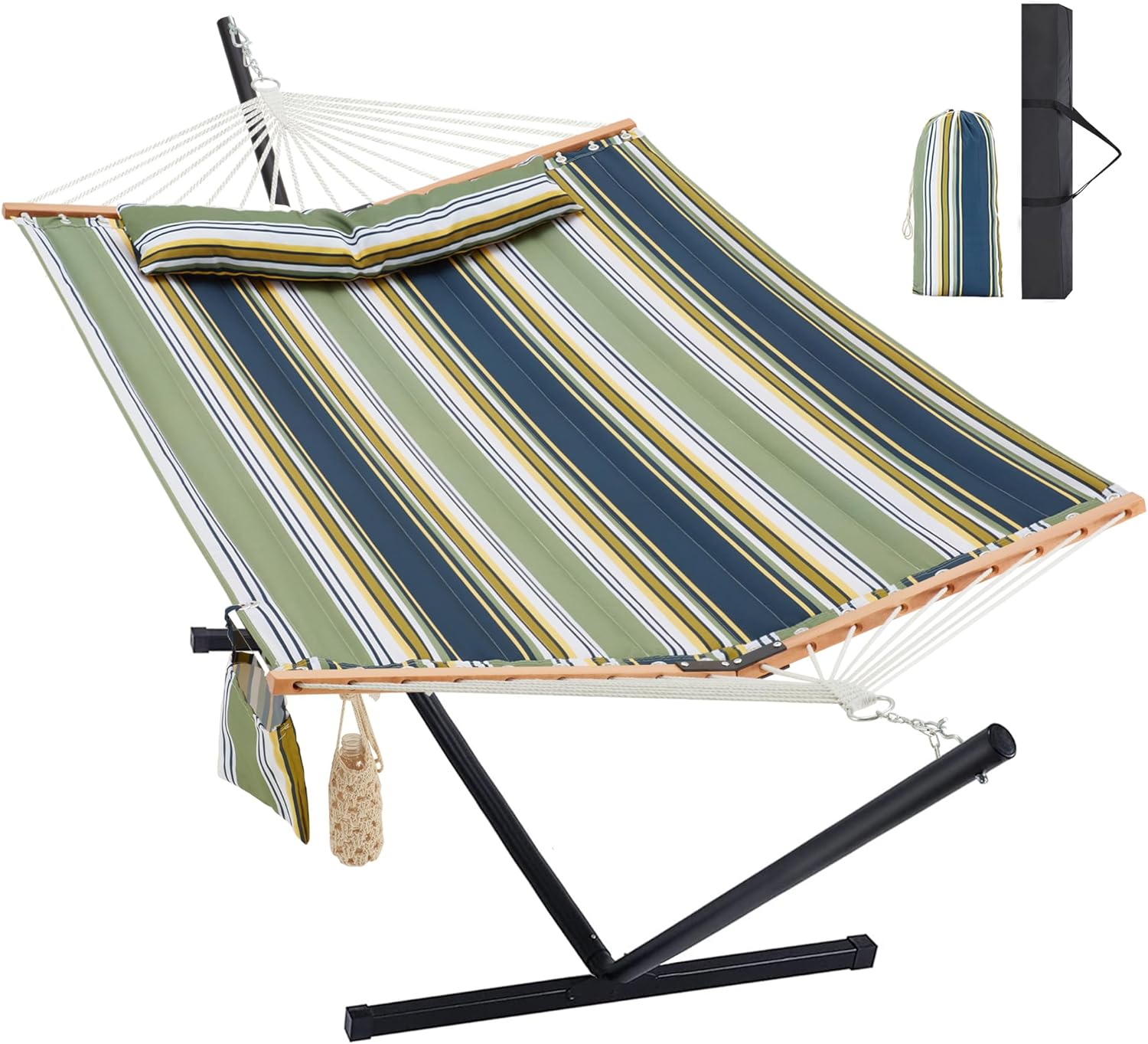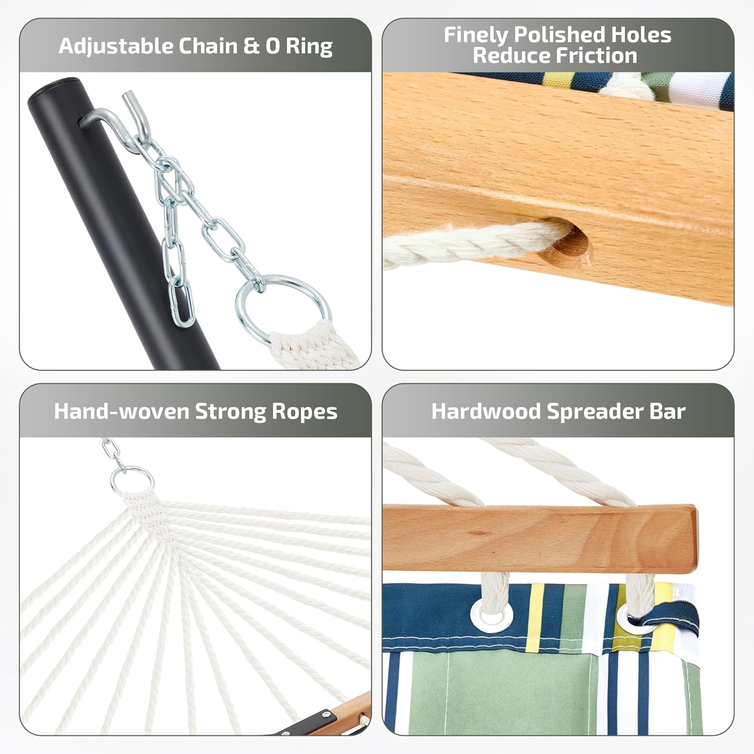 - 【Comfortable & Durable Design】Hammock with quality & coated steel stand, hand-woven strong ropes, double-layer quilted polyester fabric with poly fiber filling is durable to safely support a maximum capacity of 480 pounds. A detachable large soft pillow offers superior comfort when using.