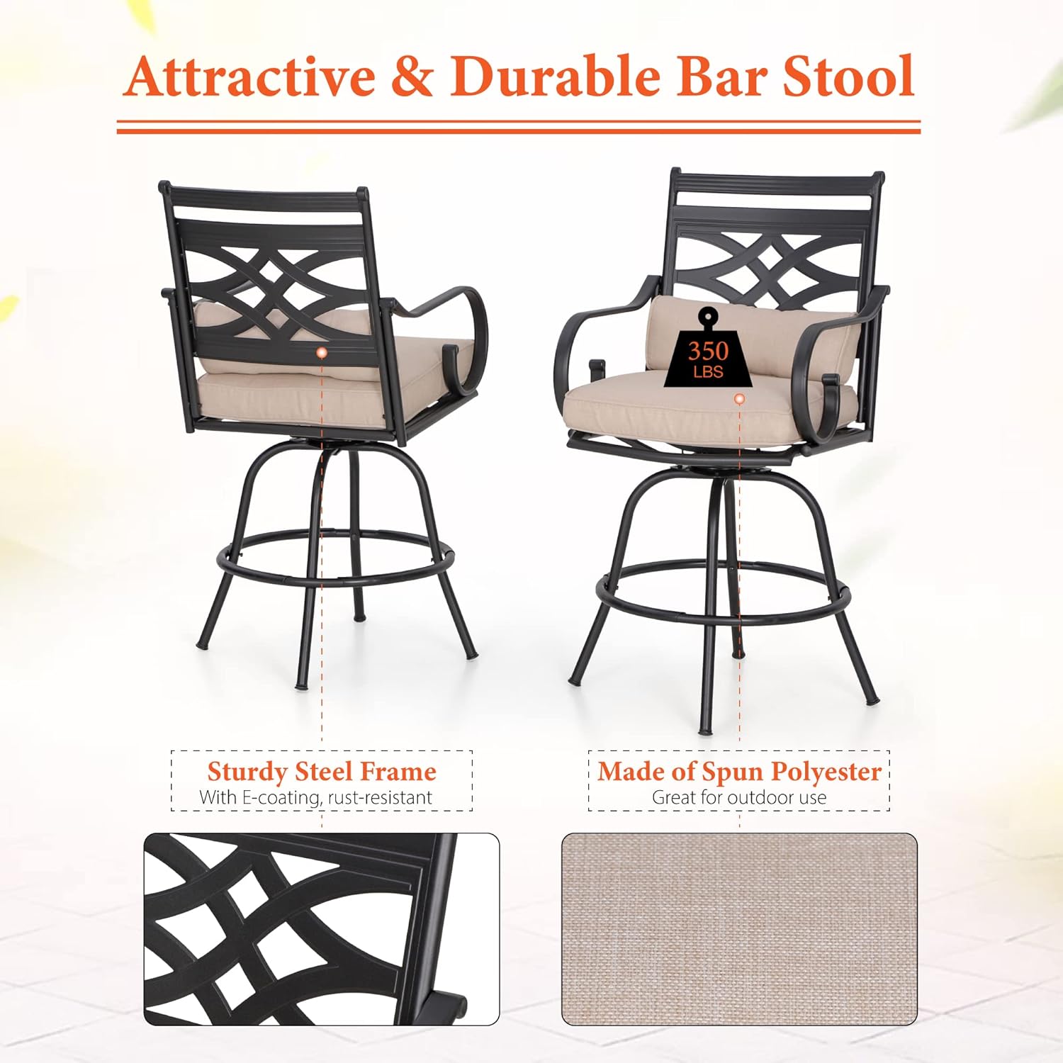 - Better Seating Experience: Smooth 360-degree swivel bar stool, great to sit in, relax or talk to your friends or family when meeting, dining or drinking. Thick and comfortable seat cushion and waist pillow included. This chair is constructed with 100% steel frame including the chair seat part which ensures better support and longer service life