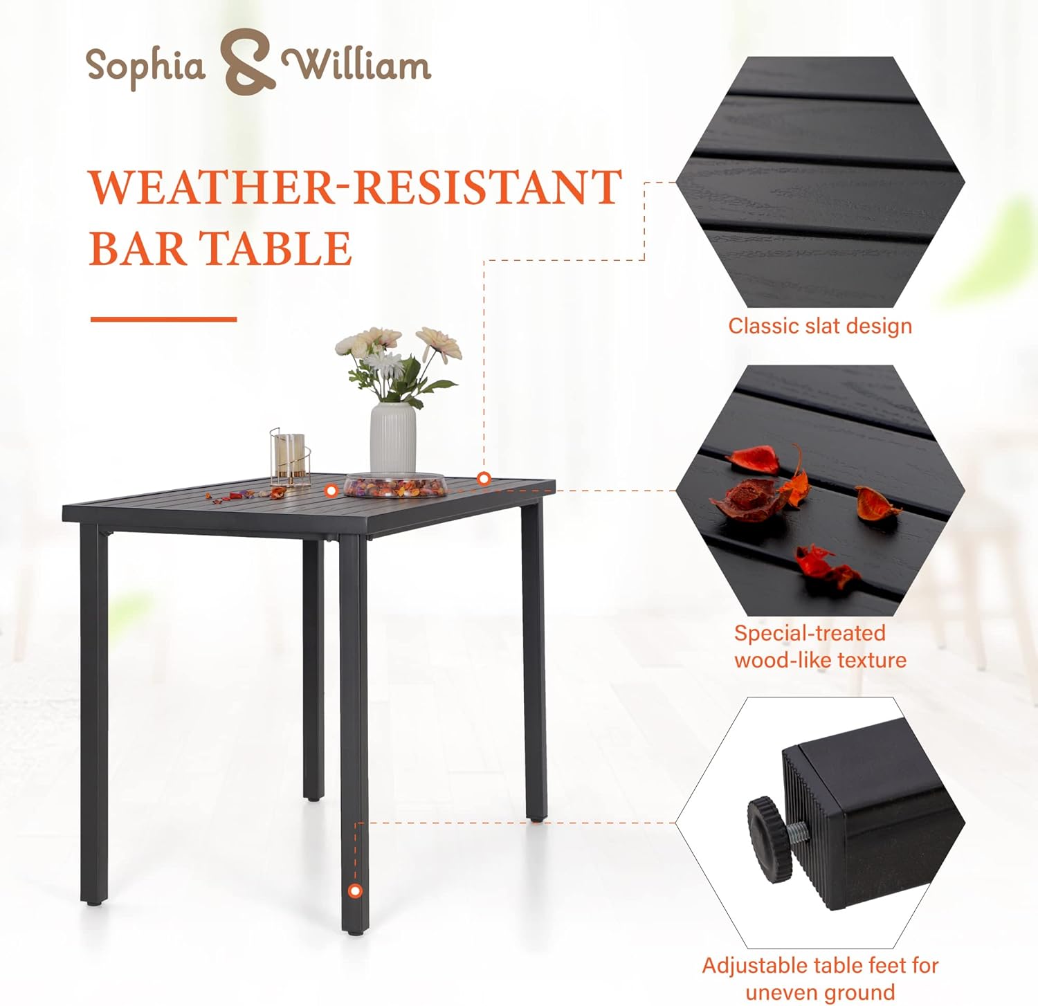 - 5 Piece Patio Bar Set: Spacious and comfortable bar set for 4 person's dining or drinking. E-coating metal steel frame ensures the longevity of this outdoor bar set. Rust and weather resistant, brings you years of enjoyment
