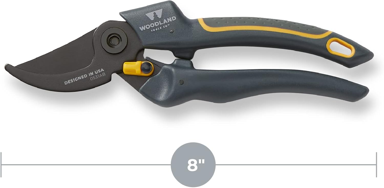 Woodland Tools Co. Duralight Bypass Pruning Shears – 5/8" Cut Capacity, Lightweight Hand Pruner, High Carbon Steel Blade, Adjustable Lock, Internal Spring, Soft Grip Garden Tool for Plants and Shrubs