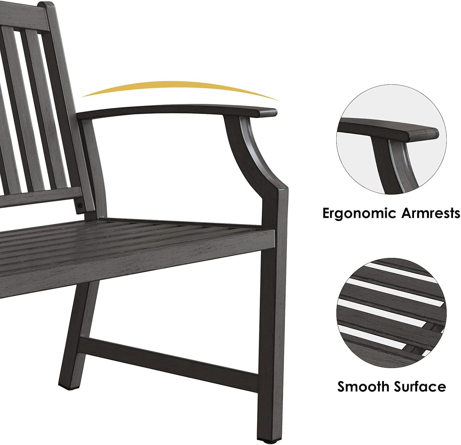 - Strong Structure: This sturdy, full-size patio bench is made of thickened steel pipes and rust free back and seat, wider and stronger armrests and backrest design makes you feel more comfortable. Max load capacity reach 660 lbs