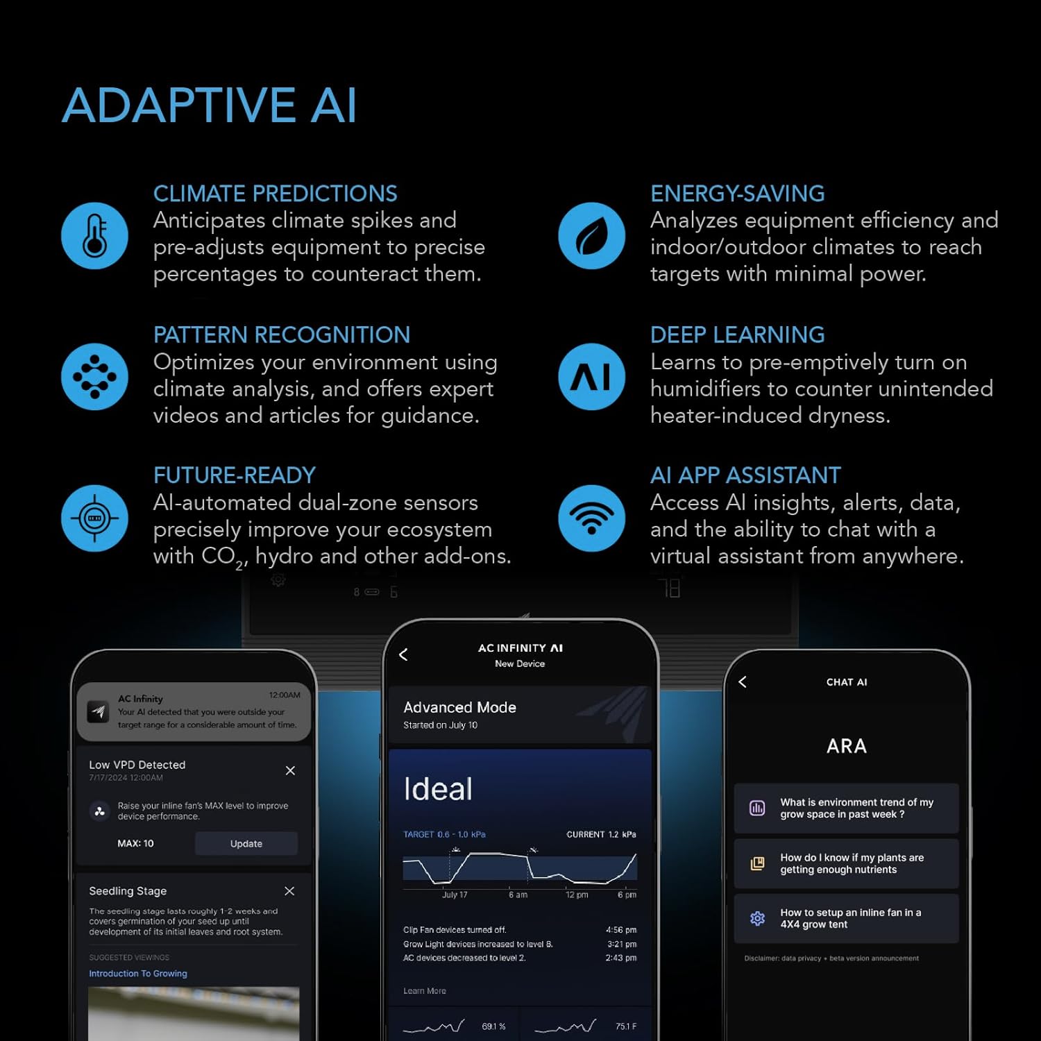 - AI-driven controller predicts climate shifts using real-time and historical data, auto-adjusting connected devices for optimal grow conditions.