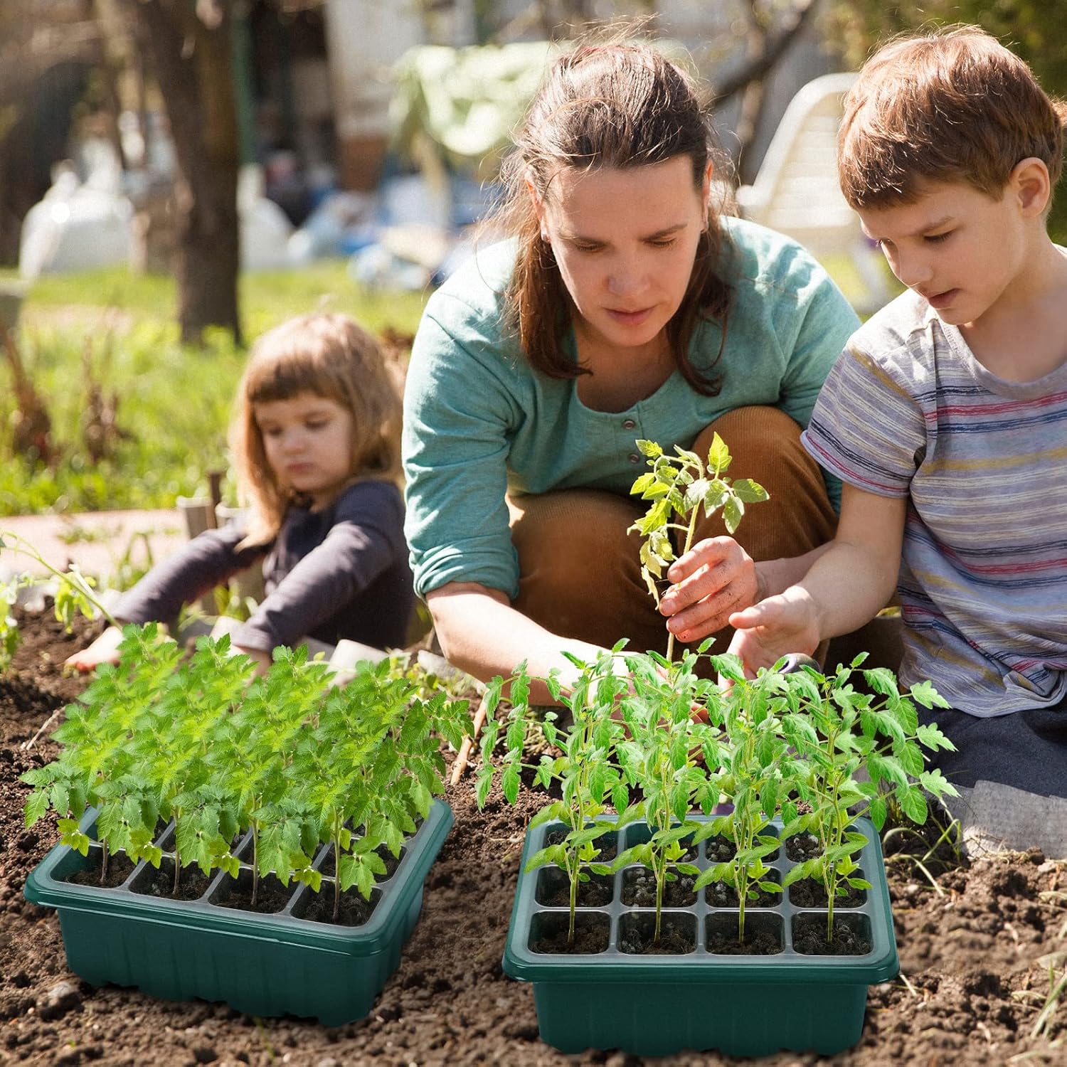 - UPGRADED THICKER ABS MATERIAL: The 12-cell seedling tray are Polypropylene plastic, which is non-toxic, environmentally friendly, sturdy, not easy to break, and durable for long time use. The germination kit is divided into equal 1.5" squares in 2.1" depth for your small or large seeds for flowers, vegetables, fruits and other plants. And you can wash and reuse them to extend value.