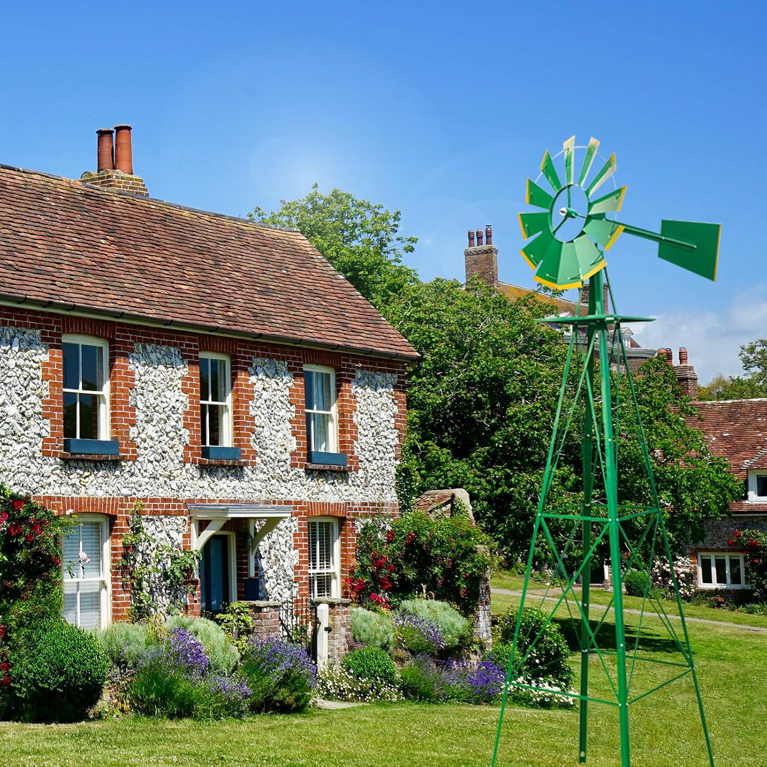 8ft Garden Windmill, Heavy Duty Durable Metal Weather Vane for Backyard, Ornamental Windmill for Yard Weather Resistant (Green, 8FT)