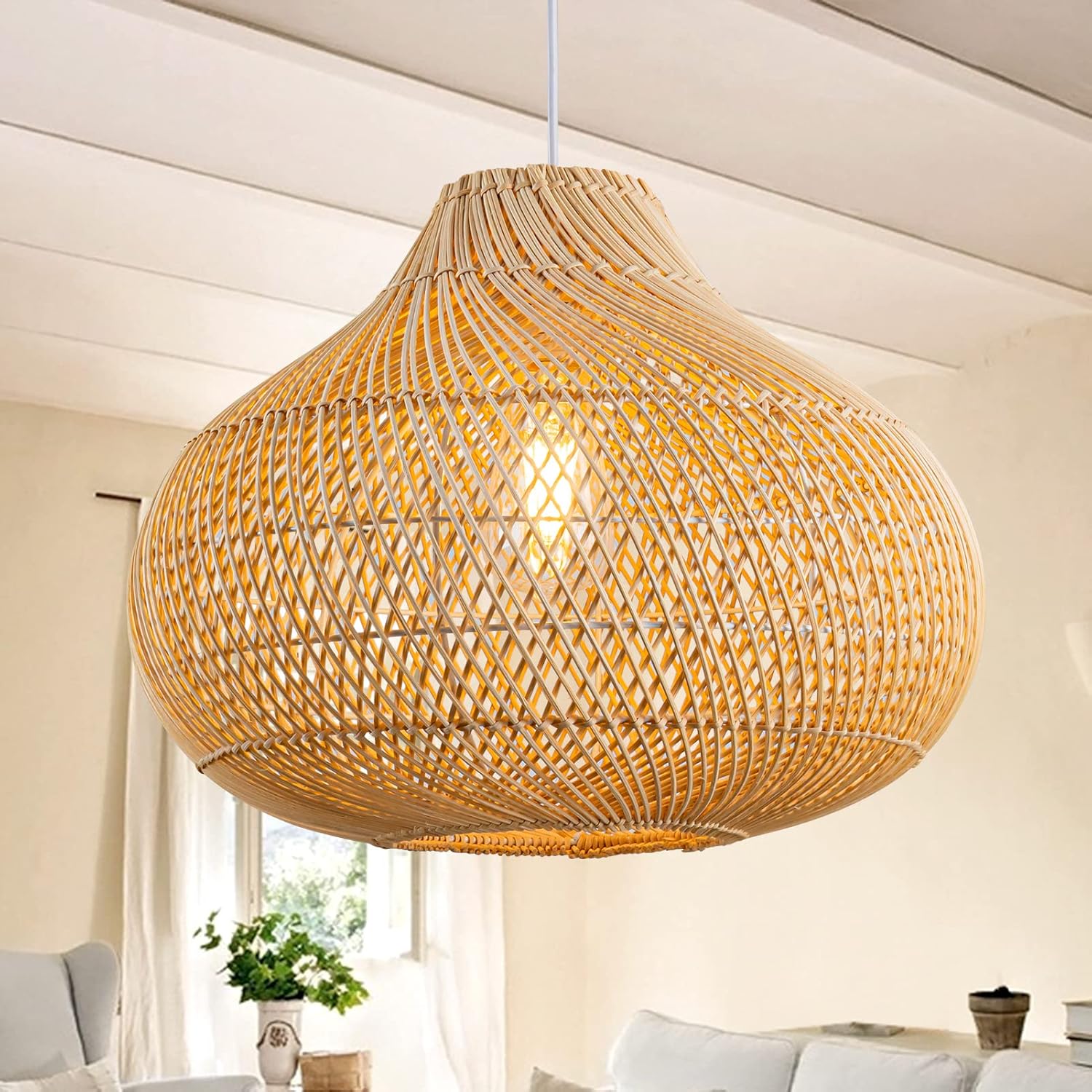 Rattan Pendant Lights, Large Wicker Chandelier Hand-Woven Boho Pendant Light Rattan Basket Hanging Light for Dining Room Kitchen Island Living Room