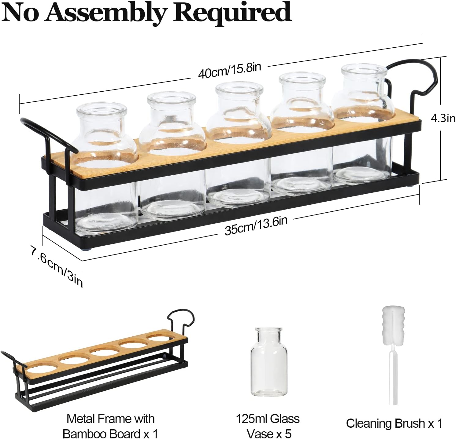 - No Assembly Required: The hydroponic propagation station is already assembled and ready to use. Package Includes: 1 x black metal stand with board, 5 x 4.4 oz bottles, 1 x cleaning brush. Note: Plants Not Included. If any part of your received item is less than perfect, please let us know, we will solve your problem within 24 hours