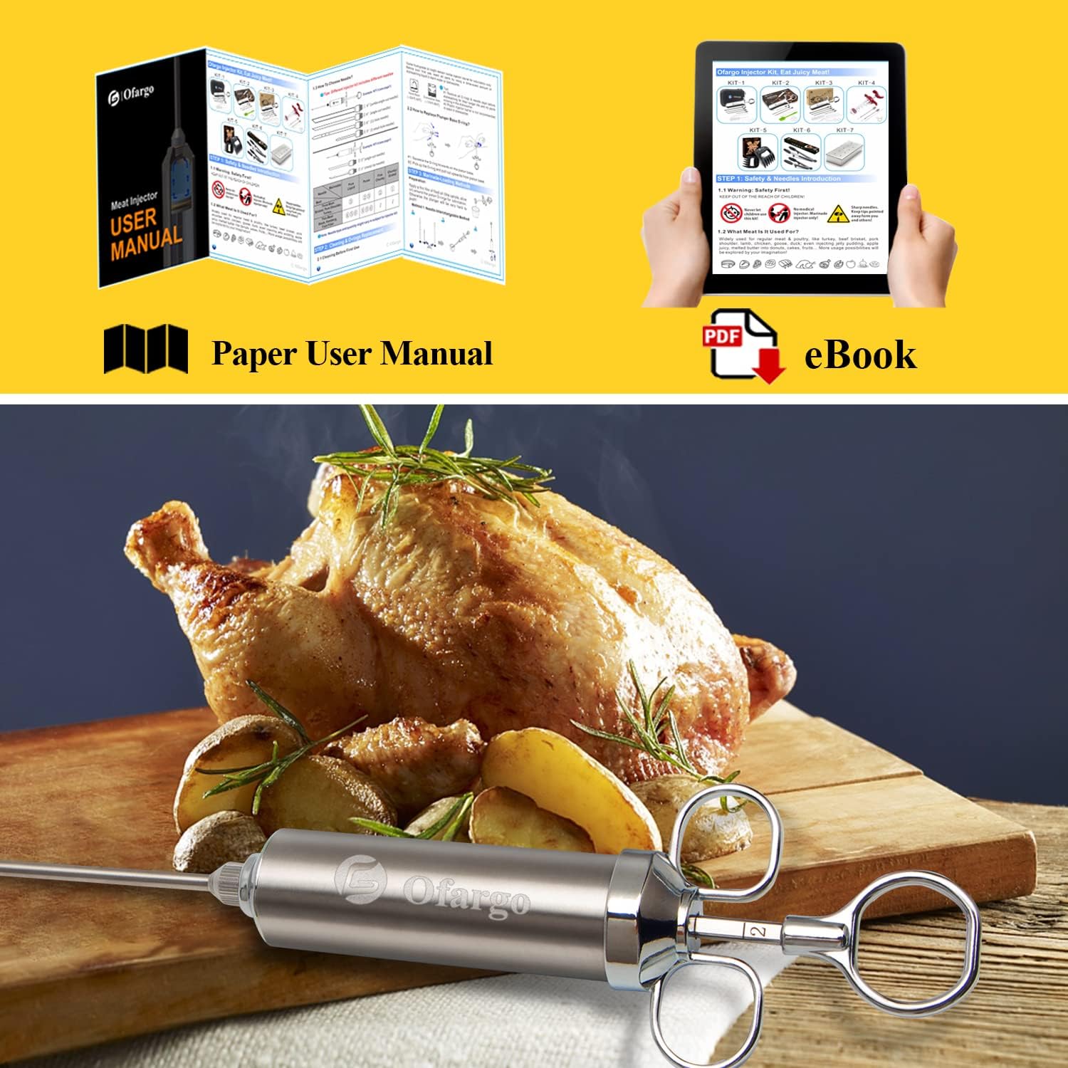 - 3 Different Needles--Ofargo BBQ injector equipped with 3 different specifications and functions needles, used for various of meat injection needs