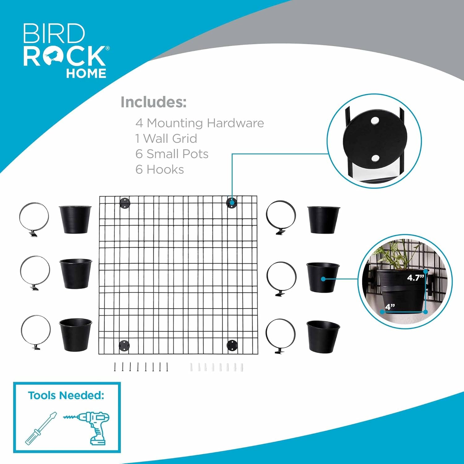 - COMPLETE SET INCLUDED: This product includes everything you need for a beautiful wall-mounted plant display: 1 grid panel, 6 metal flower pots, and 6 sturdy metal hooks. Perfect for instantly enhancing your indoor or outdoor space with greenery.