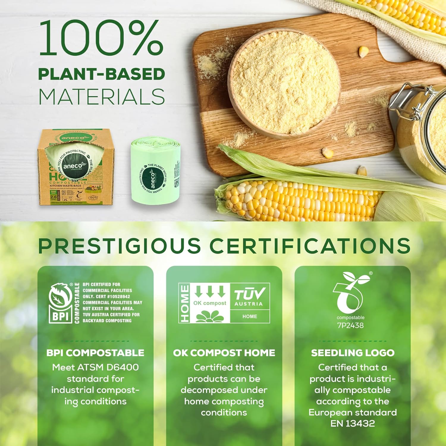 ANECO 100% Compostable Waste Bags 2.6 Gallon, Extra Thick Kitchen Small Compost Bags for Countertop Bin (100 Count)