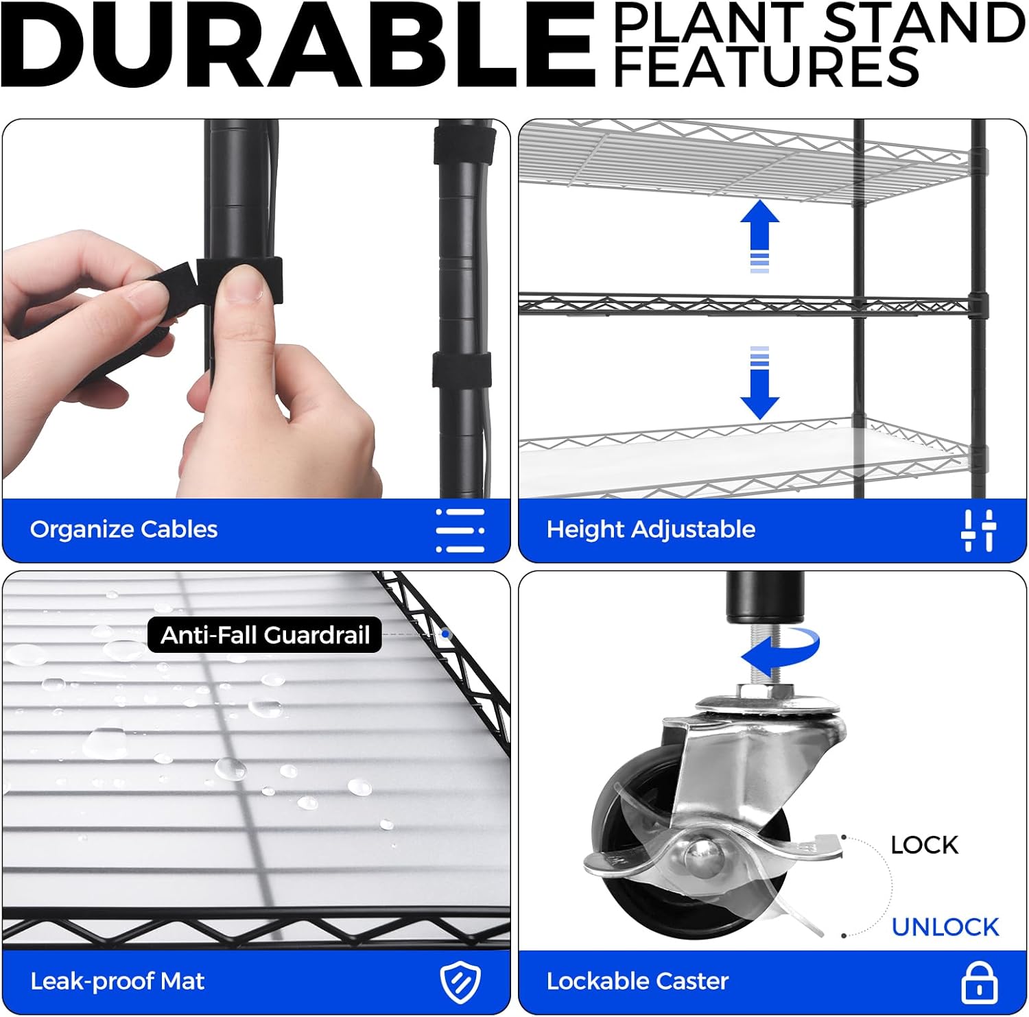 - Combination product of shelf and light: 4 layers of plant shelf matching 6pcs, 30W, 36 inch T8 LED grow light. Each level can hold up to 90 pounds of planters, total load weight up to 360lbs. each tier shelf can hold plant trays to grow or display indoor plants, suitable for seed starting, aloe vera, succulents, flowering plants