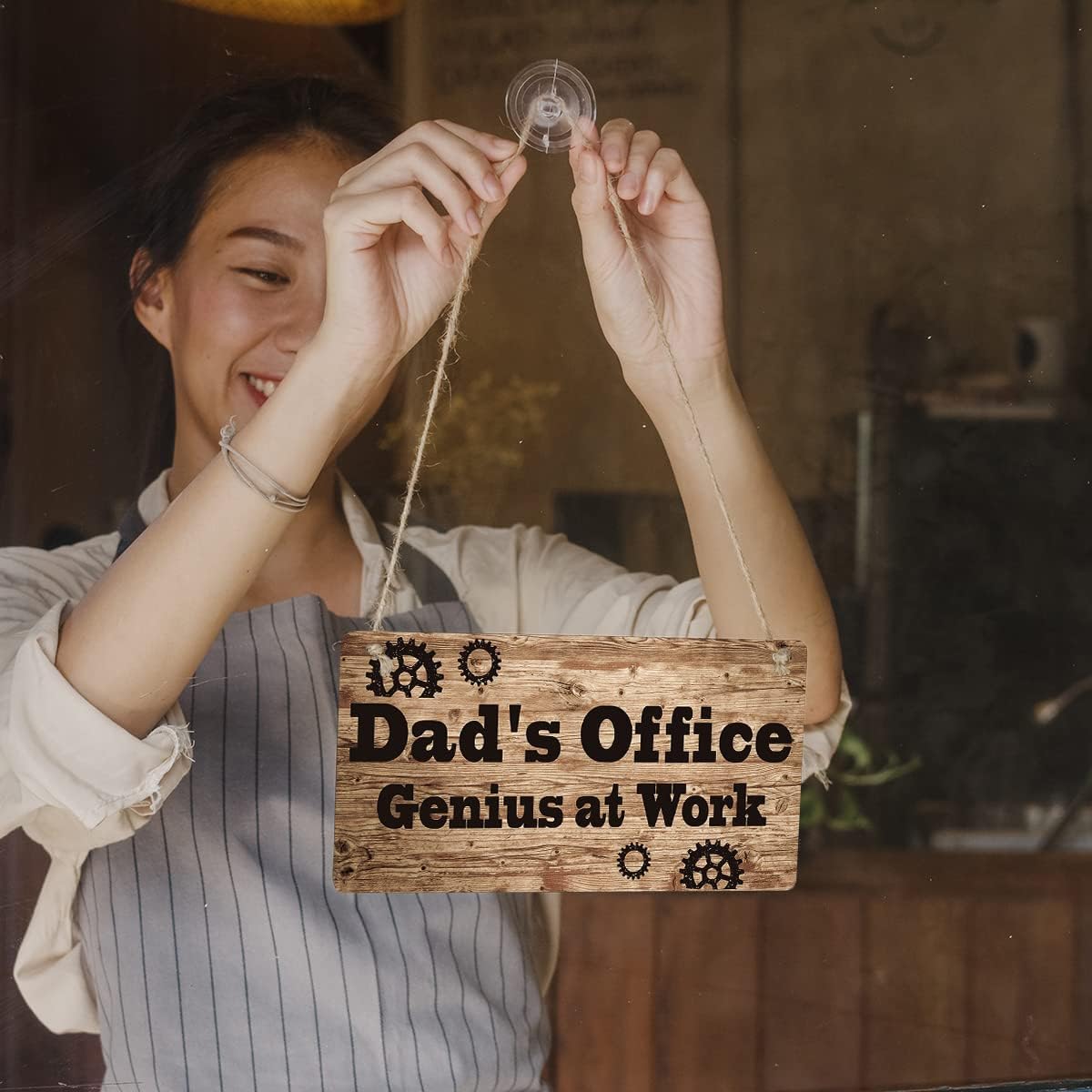 Dad Sign Gift Farmhouse Dad's Office Genius At Work Wooden Hanging Sign Plaque Retro Wall Art Decor Home Decoration 12 x 6 Inches