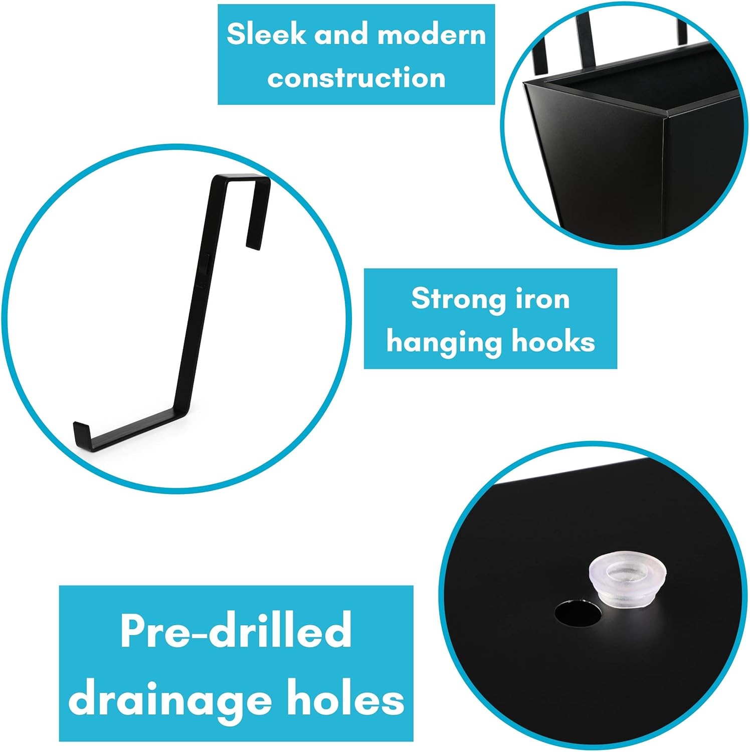 BIRDROCK HOME 1pk Metal Railing Planter - Balcony Flower Box - Deck Rail Boxes - House Apartment Plant Pot - Black
