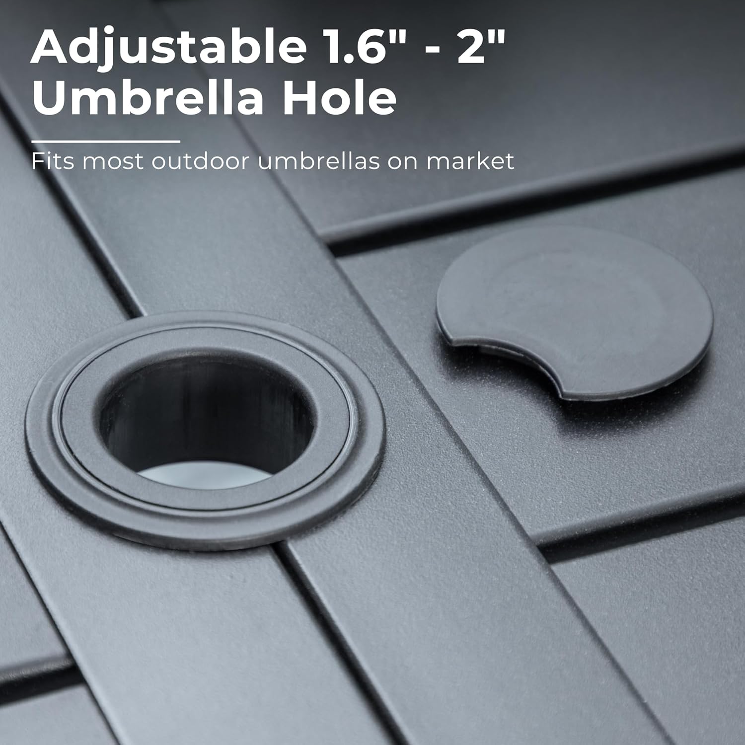 - Convenient Umbrella Hole: The umbrella hole in the center of the table allows you to easily add an umbrella for shade during sunny days or protection from light rain. Enjoy your outdoor dining experience without worrying about the sun's rays or unpredictable weather