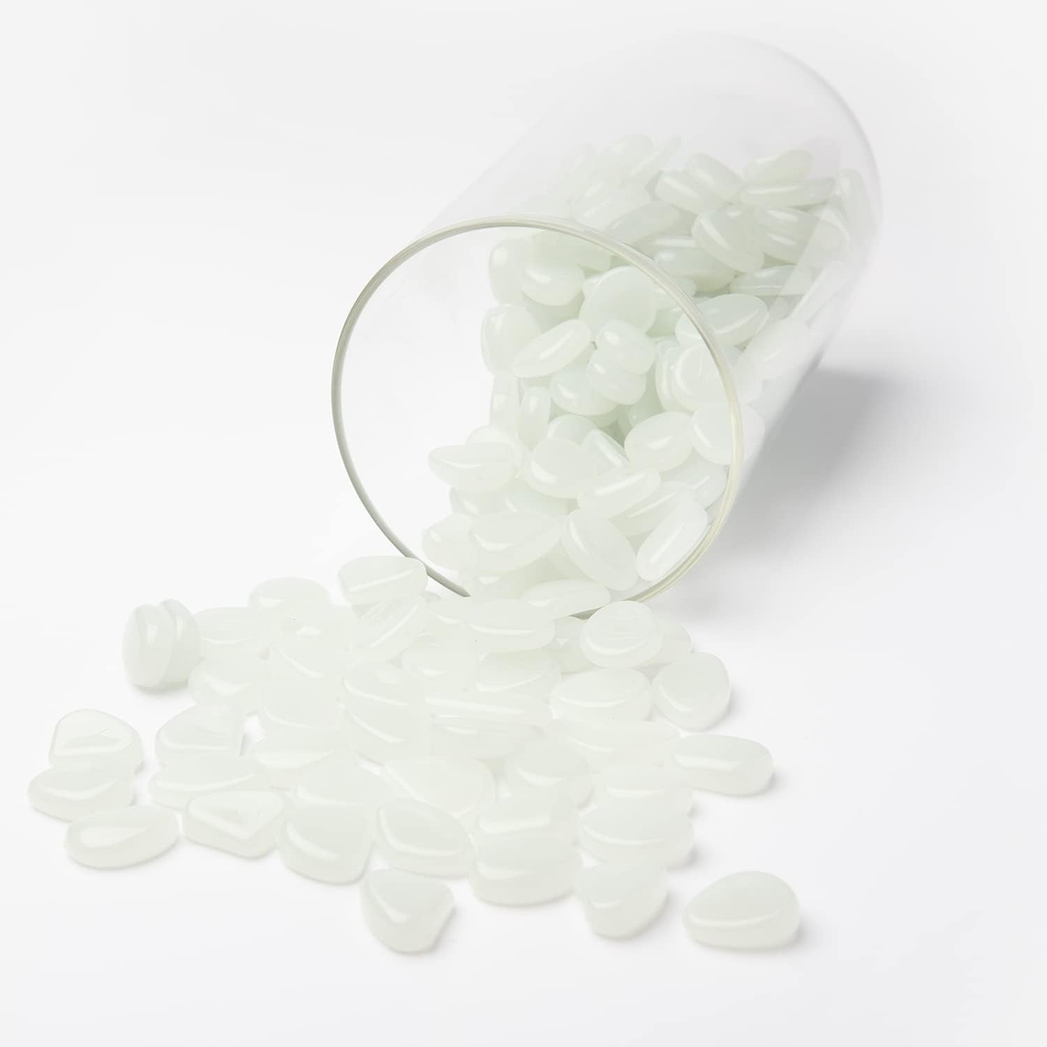 Oubest Glow in The Dark Pebbles/Glow Stones/Glowing Rocks Blue Decor for Garden/Fish Tank/Aquarium/Walkway/Driveway/Plant Pots/Bonsai (100, White)