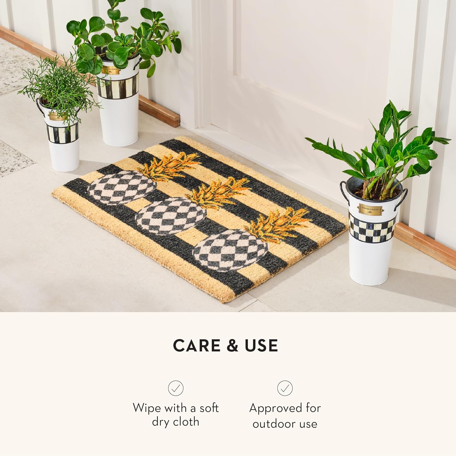 - ELEGANT OUTDOOR VASE COLLECTION: This decorative metal bucket set for flowers showcases our Spectator pattern. The color-dragged checks and stripes on the exterior are pretty enough to make a statement but subtle enough to go with any indoor or outdoor decor.