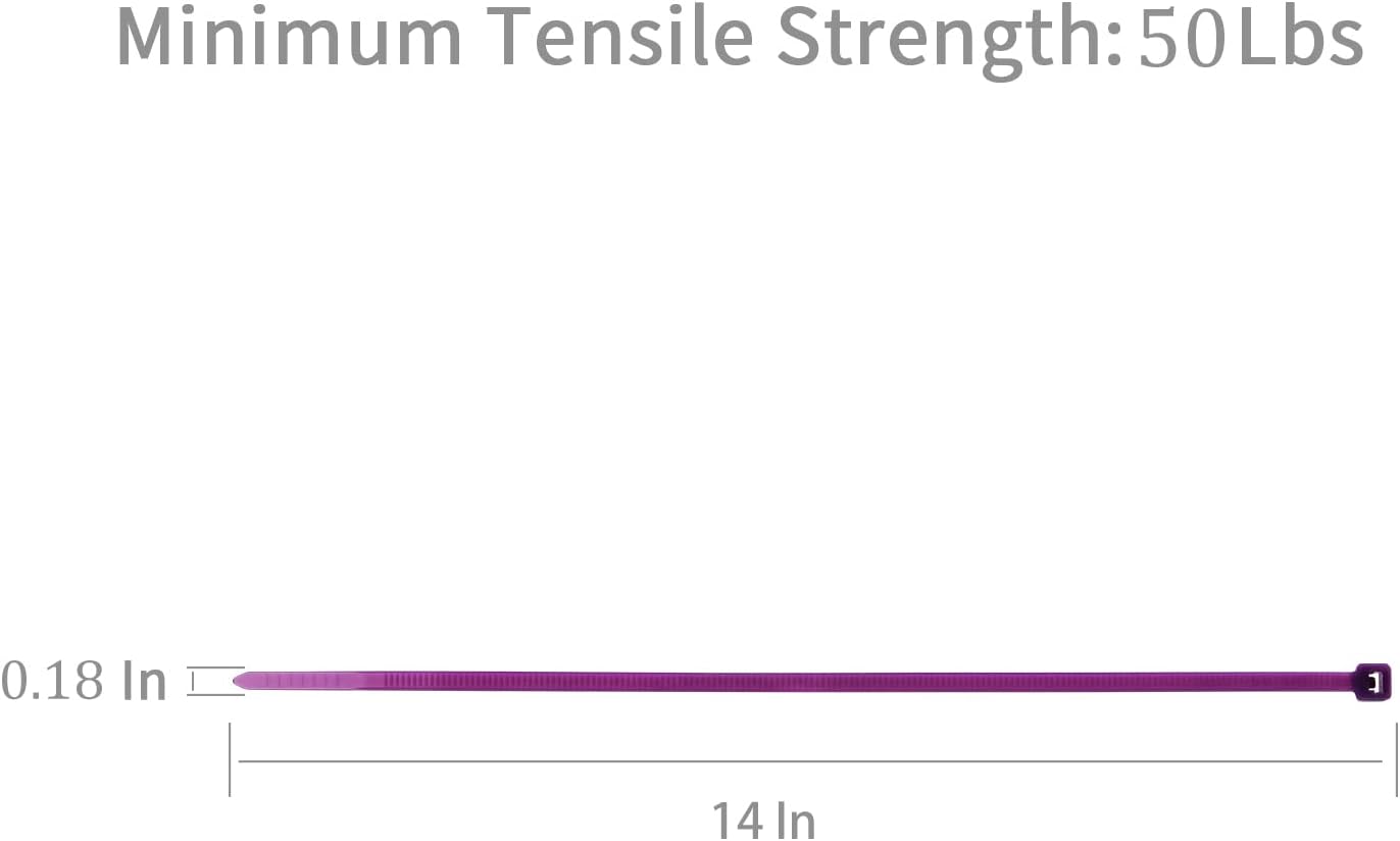 XINGO 100PCS Cable Zip Ties Heavy Duty, Premium Nylon Plastic Wire Ties with 50 Pounds Tensile Strength, Self-Locking Black Nylon Zip Ties for Indoor and Outdoor (14 inch, Purple)