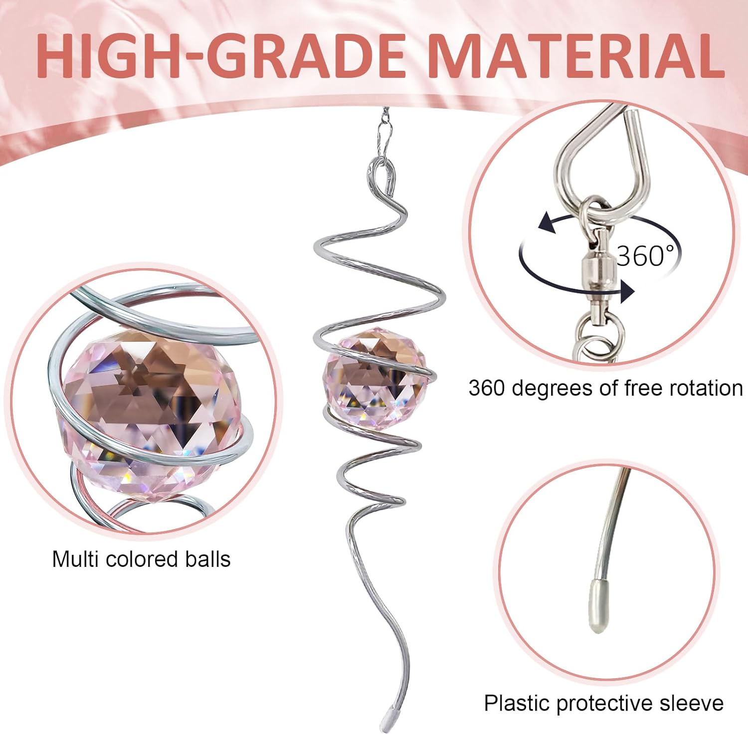 - 【 Meaningful Unique Gifts 】Pink Crystal symbolizes love and happiness. The Gazing Ball Spiral Tail Wind Spinner came in a beautiful gift box that was easily giftable. This magic ball spiral tail is a wonderful gift that will be a hit as a birthday gift, Thanksgiving gift, Christmas gift, housewarming gift, garden gift, Decor gift, etc.. The wind spiral with crystal ball is a perfect gift for birthdays, Thanksgiving Day, Christmas, etc. and any you loved people ( family, friend, etc.).