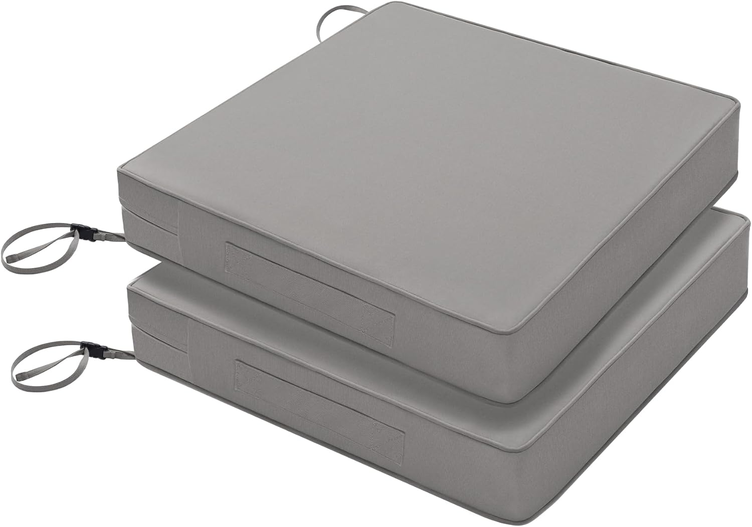 Favoyard Patio Chair Cushions 24 x 24 x 4 Inch Waterproof Outdoor Seat Cushions for Patio Furniture 3-Year Color Fastness Garden Sofa Couch Chair Pads with Handle & Adjustable Straps Set of 2, Grey