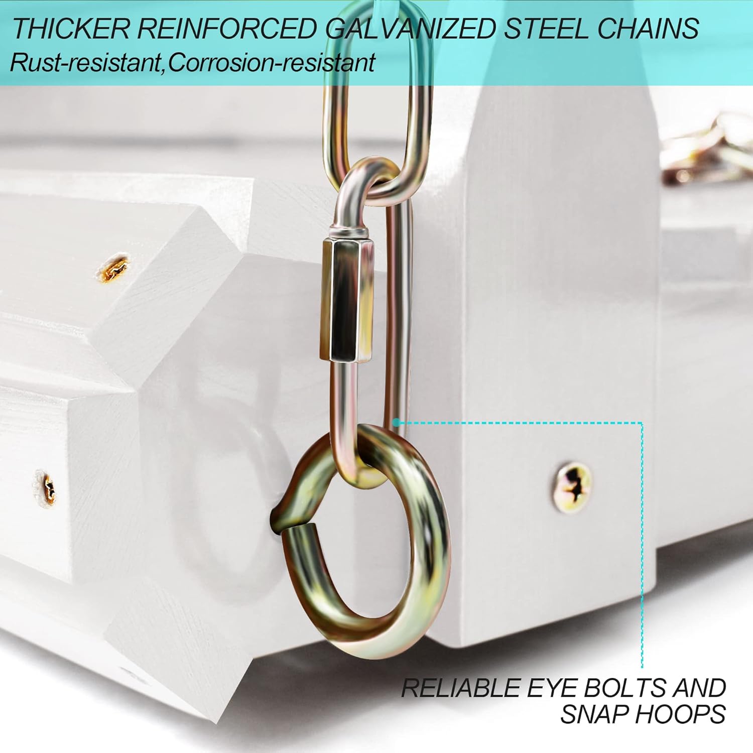 - 【Reliable Steel Chains & Anchors】This patio swing chair is hanged with 2 reinforced galvanized steel chains which is strong,rust-resistant and weatherproof,provide you extra security and stability,four reliable anchor points at the joint prevent this seat from tipping over,offer you a perfect balance,ensure you a safer seating experience!Feel free to adjust the angle and height of the bench swing by adjusting the well-polished steel chains to make this swing fit you better!