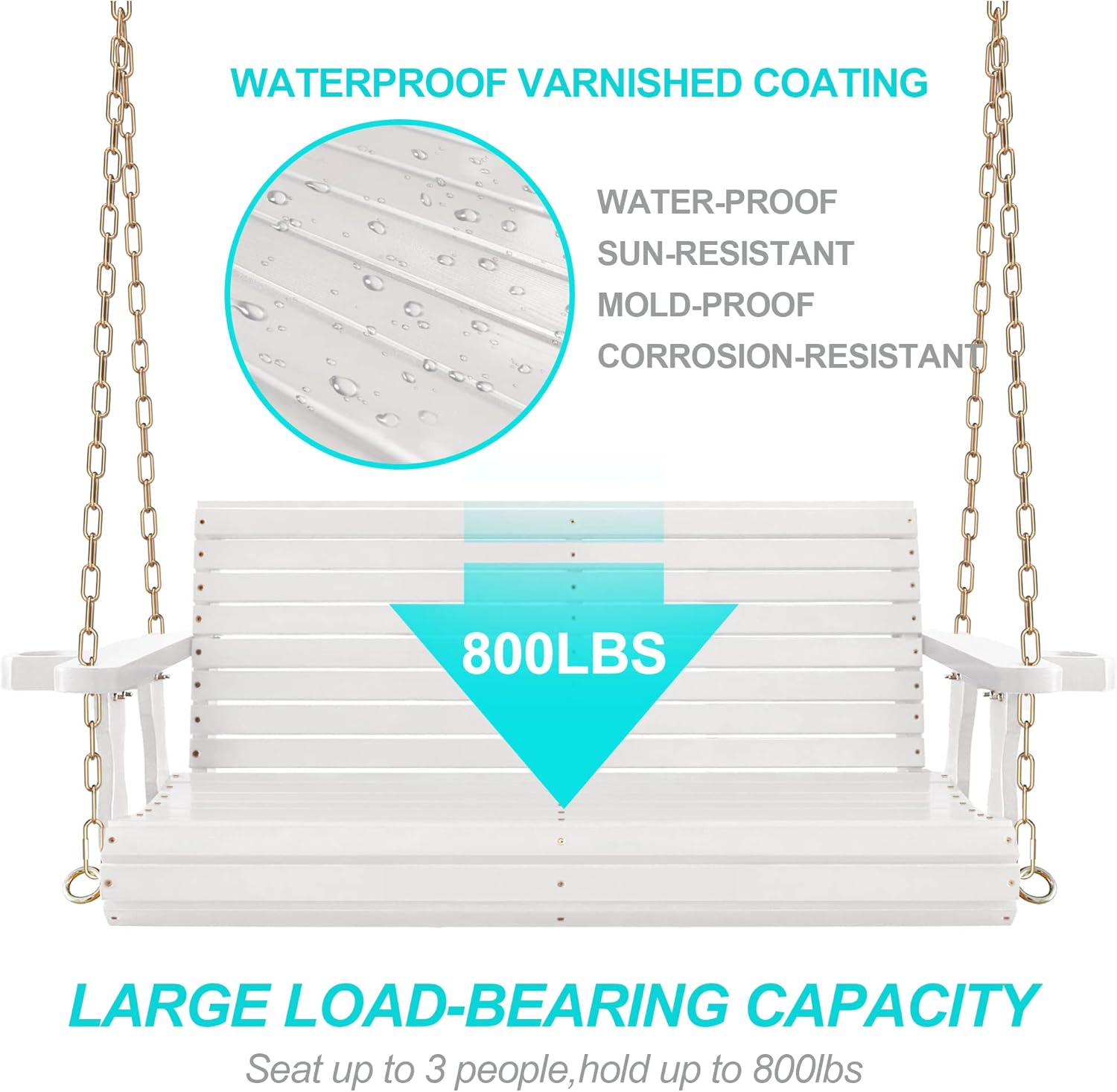 - 【Solid Pine Wood】Our hanging porch swing is made of strong and premium pine wood which is extremely sturdy,durable and weather-resistant,each wooden slat is thickened to 0.7" thick to better prevent deforming,chipping and peeling,cracking and splitting when exposed to the elements,guarantee this swing seat can be used outdoors for years!100% natural wood is environment-friendly and 100% safe for your kids and pets