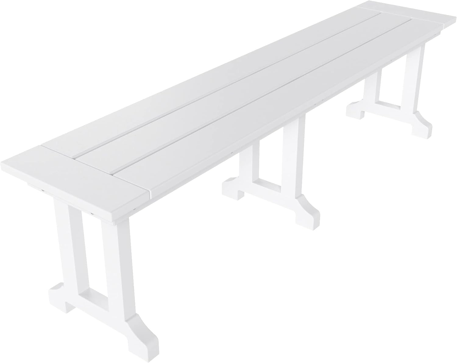 WestinTrends Malibu 65" Outdoor Dining Bench, All Weather Resistant Poly Lumber Patio Garden Bench Trestle Long Bench for Both Outdoor and Indoor, White